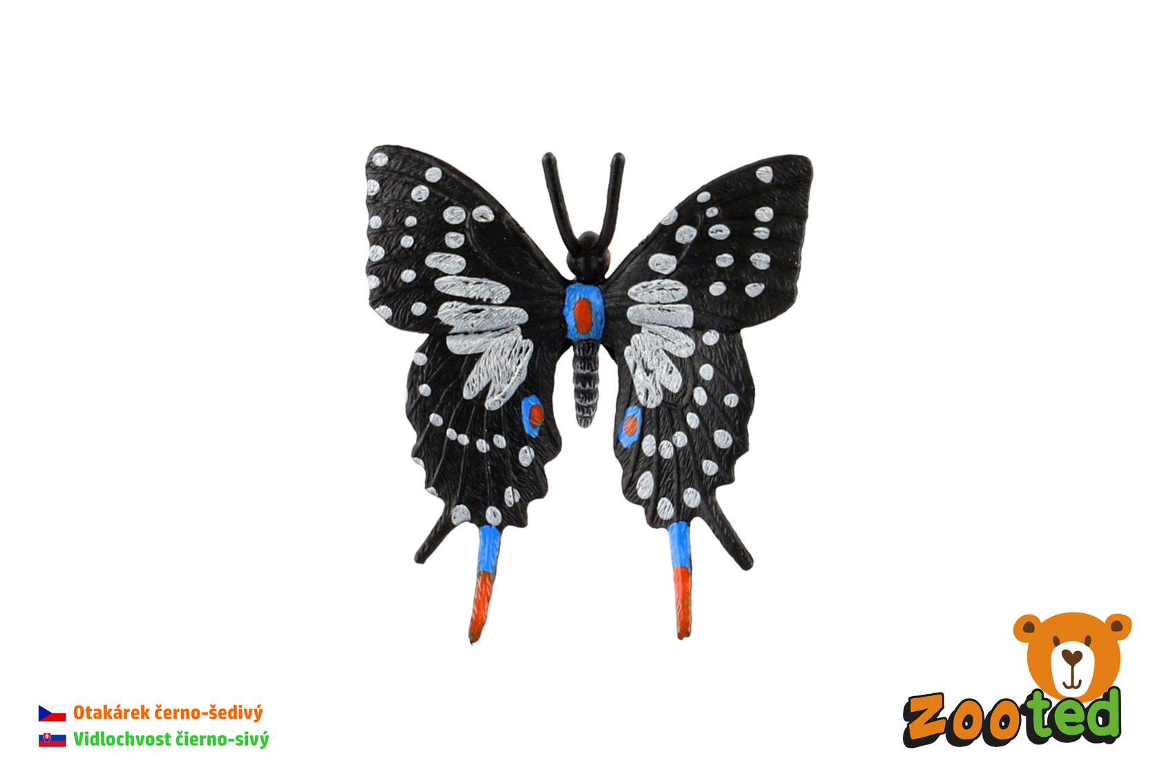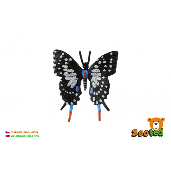 Popis ZOOted Motýľ tropický Papilio/vidlochvost čierno-sivý zooted plast 6cm v sáčku