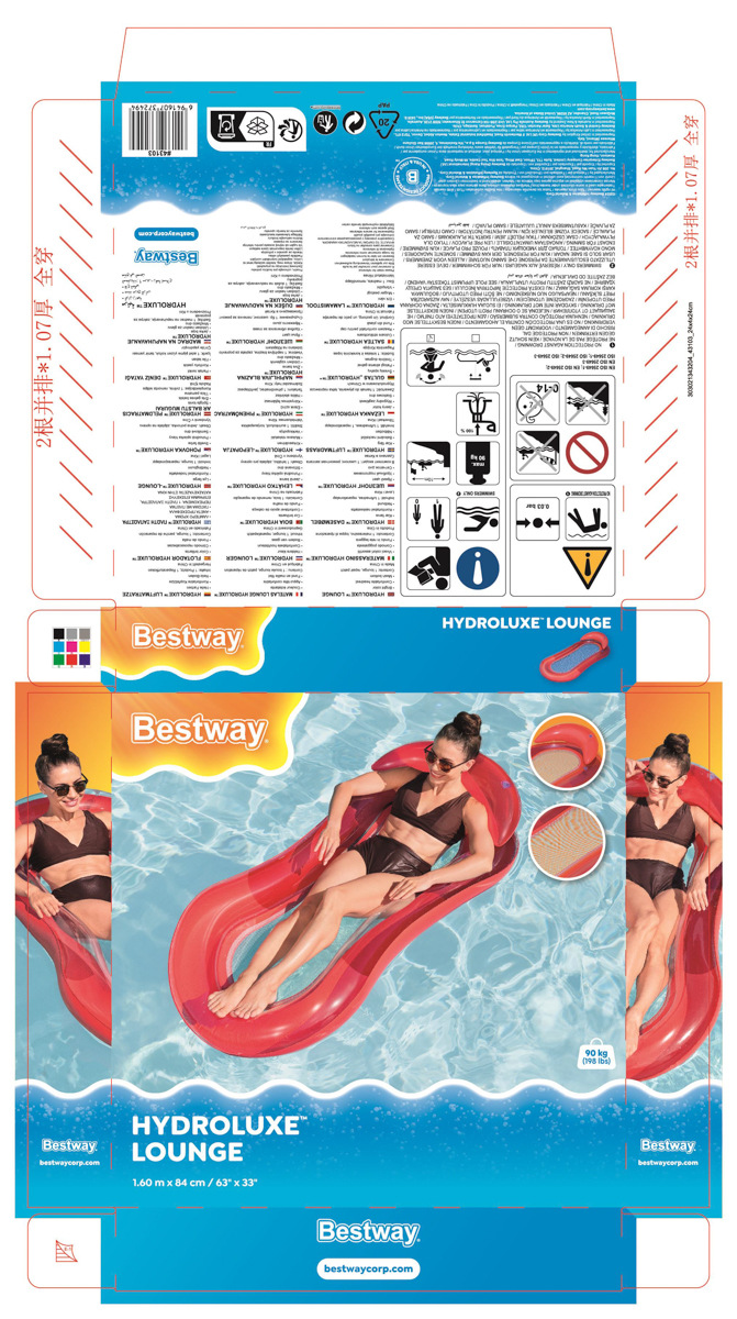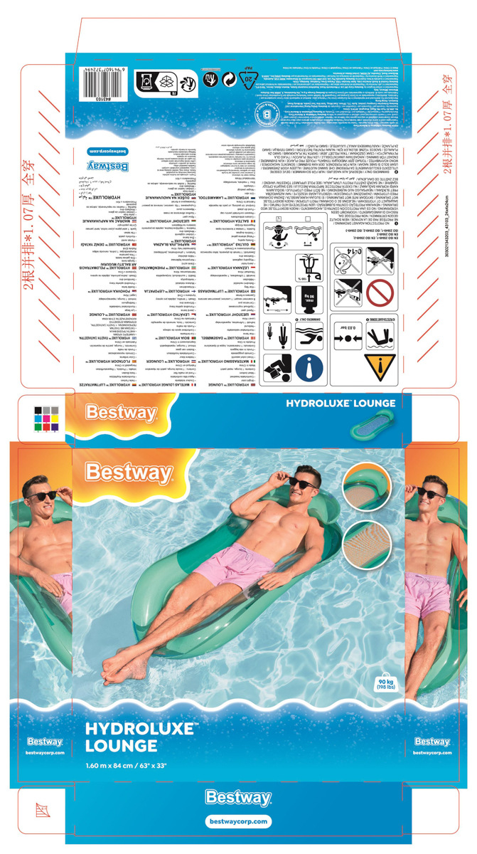 Bestway® Nafukovacie lehátko s povrchom Color Shield™ a sieťkou. Príjemná sieťovina CoolDown™ je opatrená trvanlivým poťahom, ktorý bráni jej poškodeniu. Povrchová úprava Color Shield™ zabraňuje vyblednutiu a zmene farby povrchu. Tvárna konštrukcia – možné použitie ako rovný nafukovací matrac, bazénové kreslo, alebo hojdacia sieť. Lehátko má dve vzduchové komory a poistné ventily. Vrátane opravnej záplaty. Nafúknutá veľkosť: 22 x 81 x 114 cm. Nenafúknutá veľkosť: 87 x 140 cm. Rozmery balenia: 19,8 x 19,8 x 4 cm. Určené pre 1 osobu. Maximálna nosnosť: 100 kg. Vek: 14+