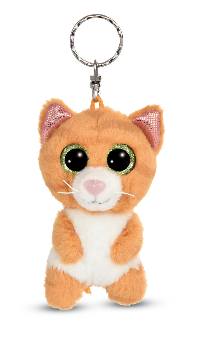 Hrdzavá mourovatá mačička s trblietavými očami a ružovými lesklými ušami a labkami. S krúžkom na hlave ako kľúčenka. V sérii GREEN od Nici sa takmer výhradne používajú plyšové a výplňové materiály vyrobené z recyklovaných materiálov. Výška: 9cm. Vek: 3+