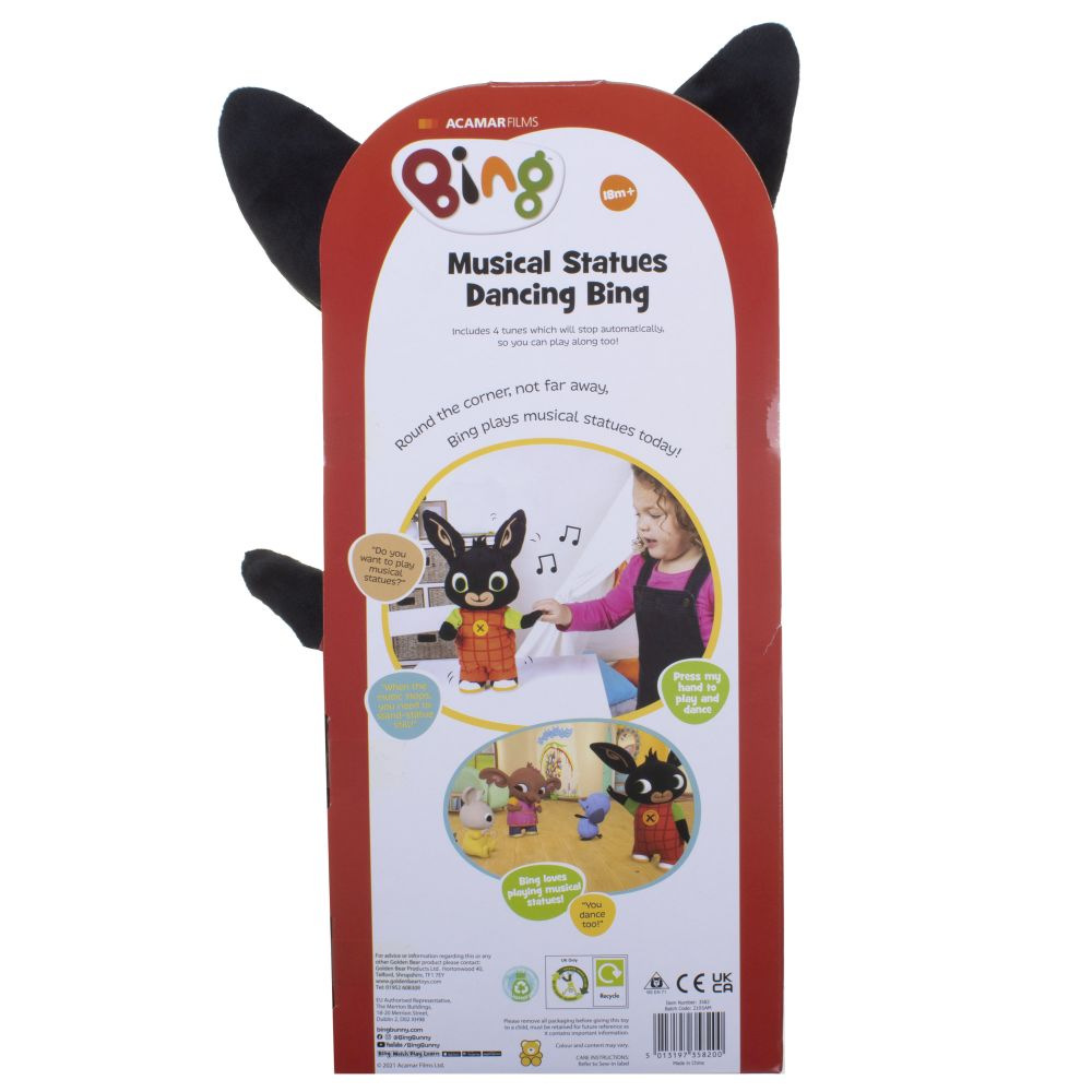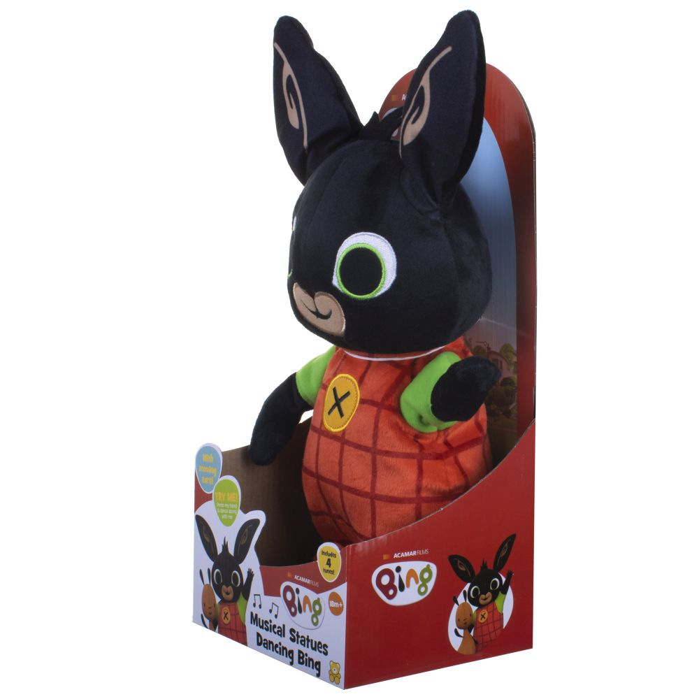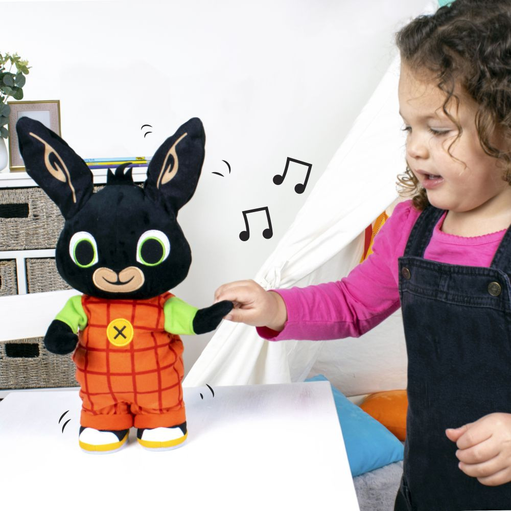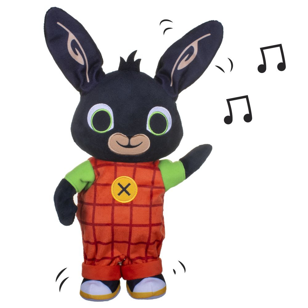 Plyšový hovoriaci zajačik BING z obľúbenej rozprávky Bing. Je to skvelý spoločník, vie tancovať a rozprávať. Keď stlačíte malú ručičku, môžete počuť, ako Bing hovorí/hrá a tancuje. Je vyrobená z mäkkého, príjemného a kvalitného materiálu. Súčasťou balenia sú 3 batérie AAA, ktoré sa dajú vymeniť.