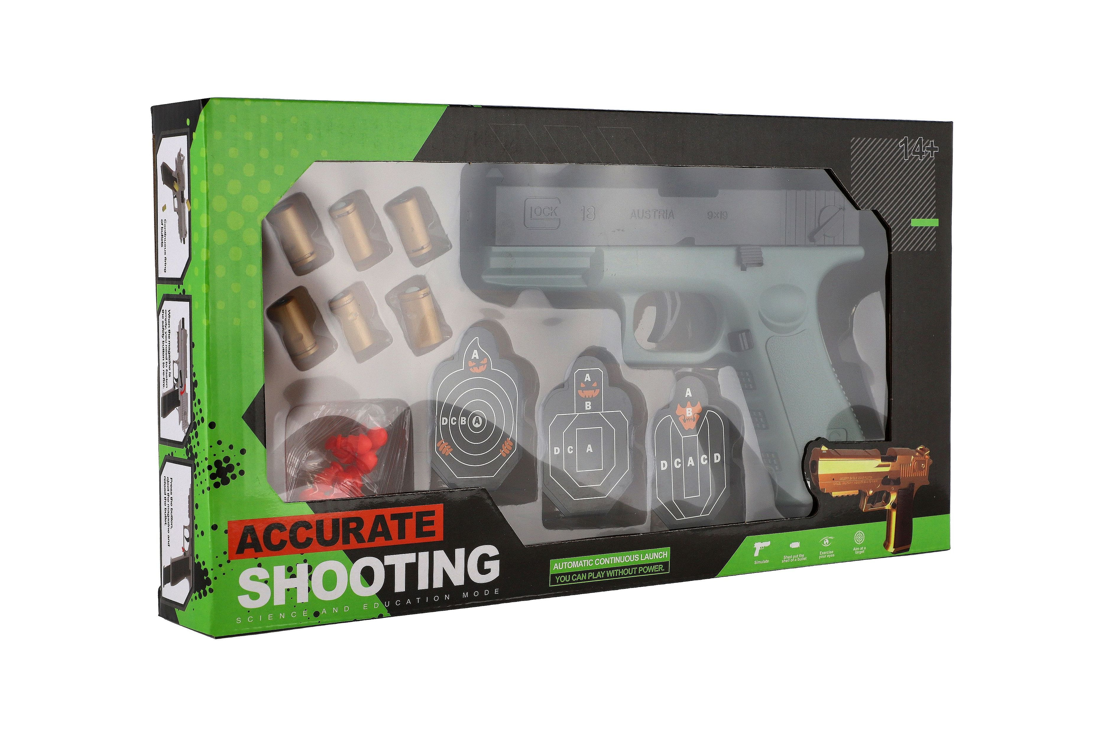 Popis Teddies Pištoľ na penové náboje plast 19cm + terče 3ks, náboje 6ks v krabici 34x18x4,5cm
