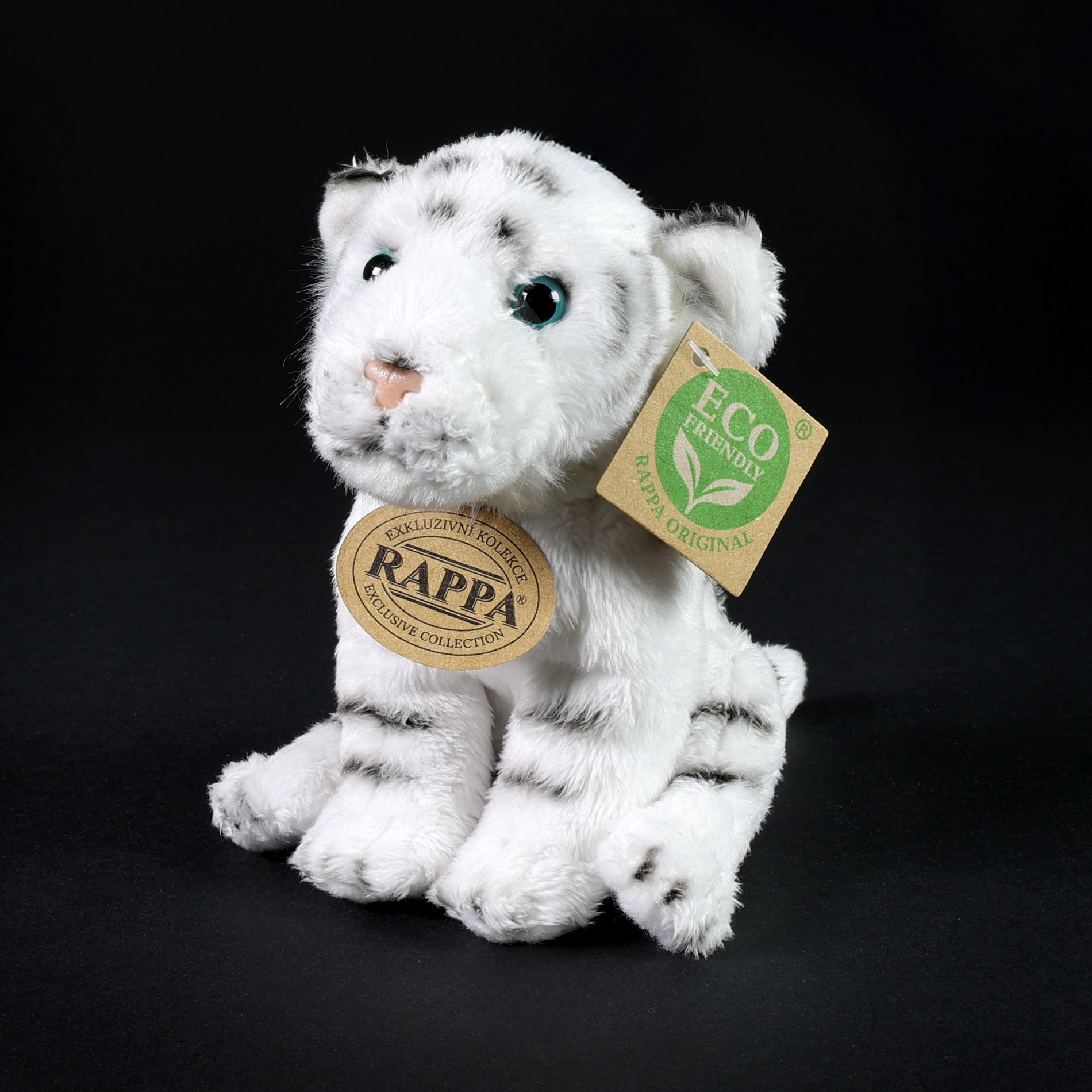 Plyšový tygr měří 15 cm a díky těm nejkvalitnějším materiálům se řadí do Exkluzivní kolekce plyšových hraček značky Rappa. Díky ručnímu zpracování každého kusu navíc vypadá jako živý. Proč označení ECO-FRIENDLY? Rappa si je vědoma všech dopadů na životního prostředí, zaměřuje se na udržitelnost a omezení používání plastů na minimum. Proto je výplň hraček vyrobena z recyklovaných materiálů, zejména PET lahví. Ta je však zcela nezávadná a vhodná i pro děti od narození. FUN FACT: Věděli jste, že tygři jsou mistři tiché a strategické lovné techniky?