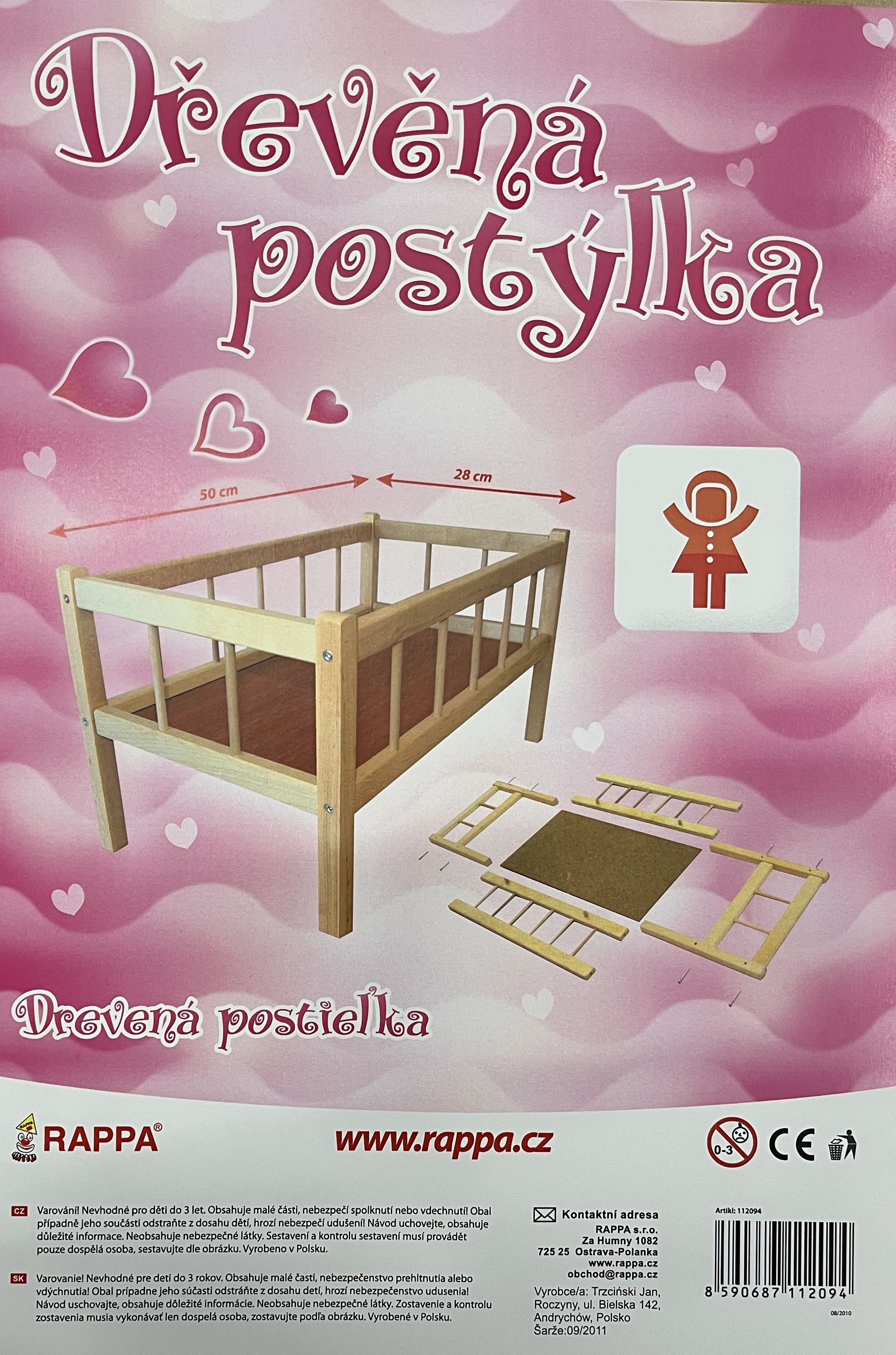 Práve pre vašu bábiku je určená táto úžasná posteľ, v ktorej bude určite spať ako v rozprávke. Veľkosť postieľky 50 x 28 cm.