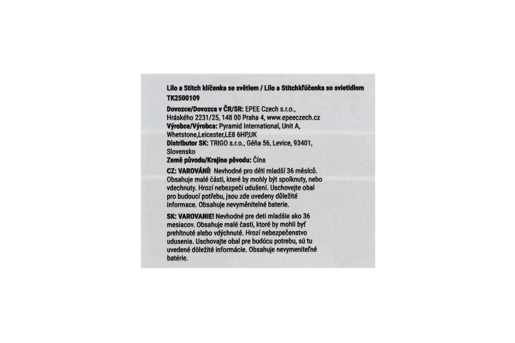 Přívěsek na klíče/Klíčenka Lilo a Stitch plast 11cm na baterie se světlem na kartě