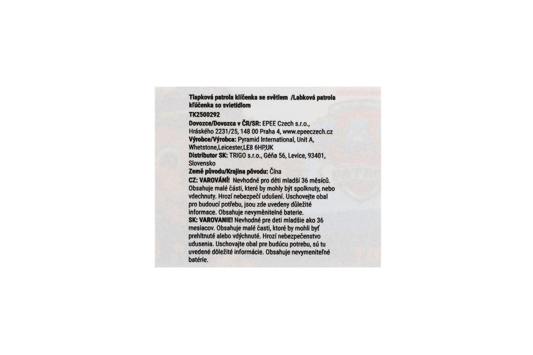 Popis Přívěsek na klíče/Klíčenka Tlapková patrola/Paw patrol plast 10cm na baterie se světlem na kartě