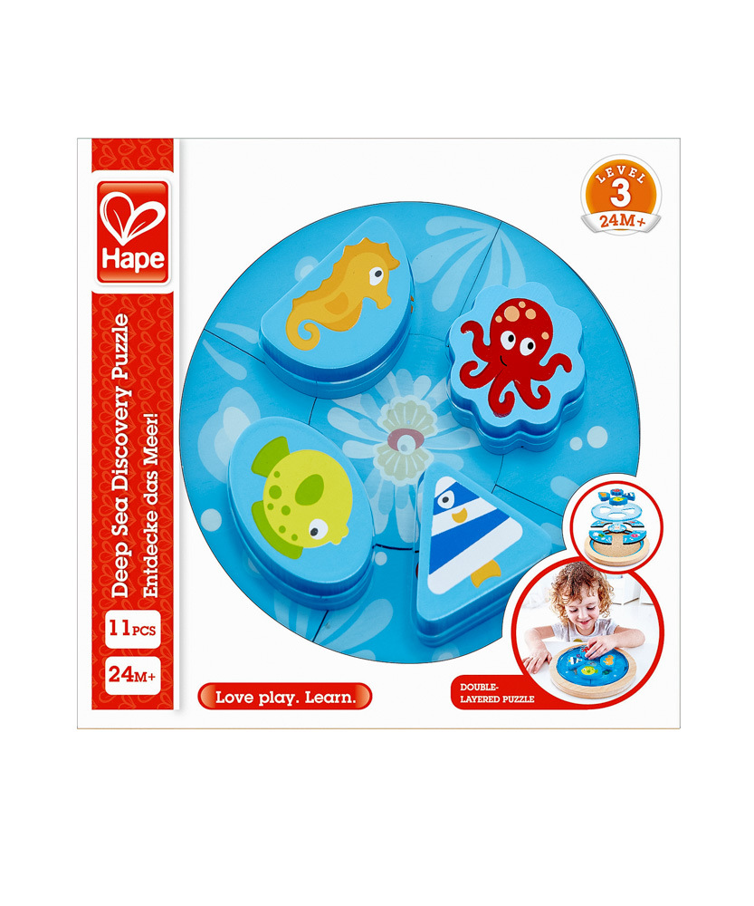 Puzzle na desce s obrázky mořských zvířátek jsou v ideální velikosti pro malé ručičky. Sada obsahuje 11 dílků. Poutavé barevné provedení. Hračka pomáhá rozvíjet motorické dovednosti. Věk: 24m+. Rozměr: 20,8 x 20,8 x 2,4 cm.