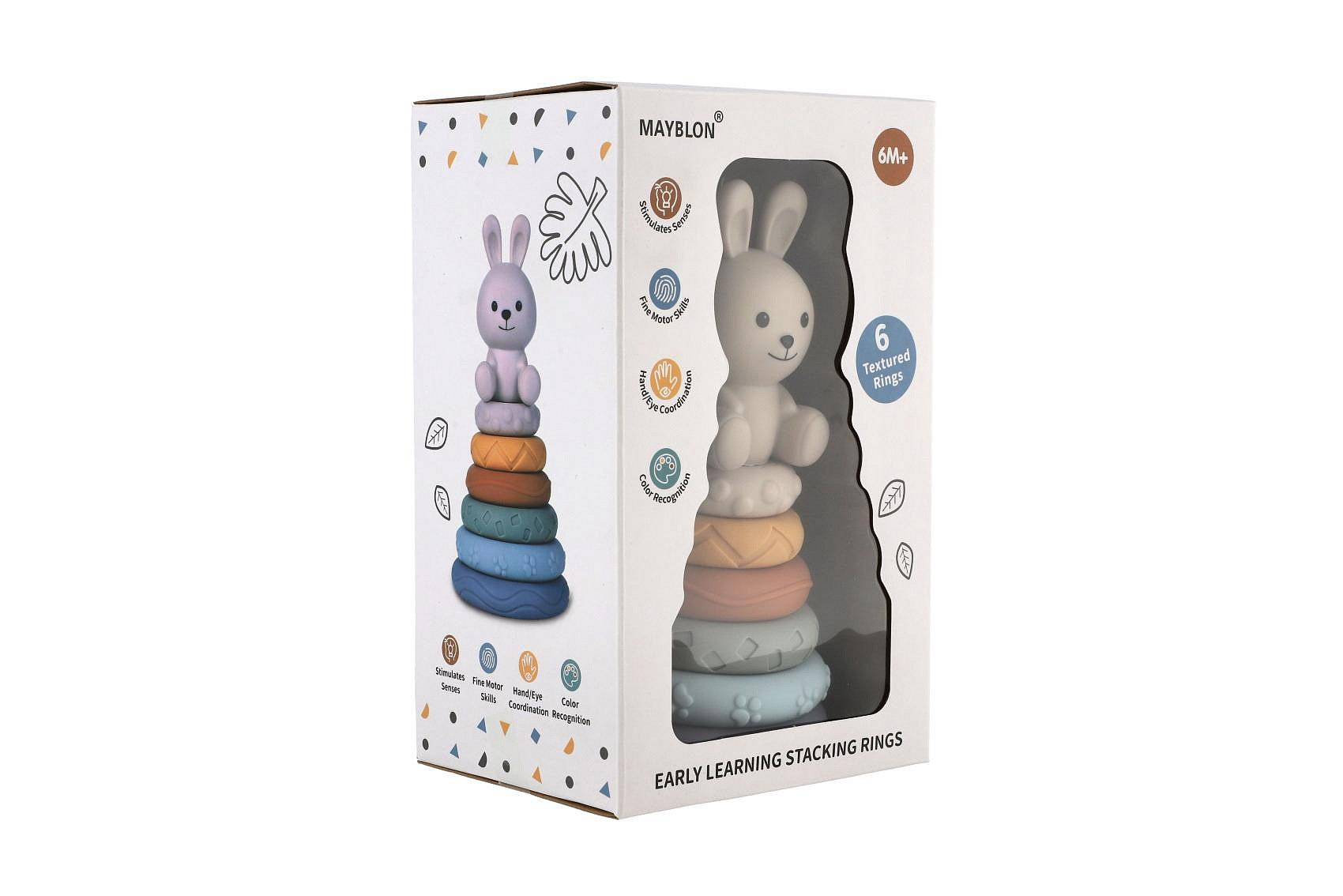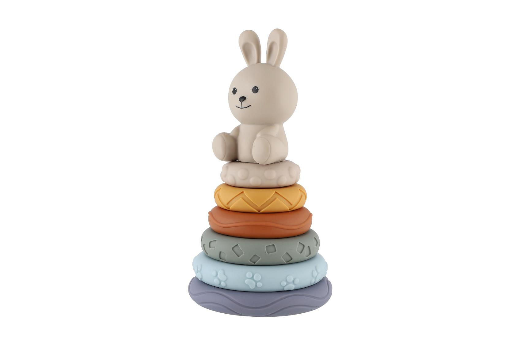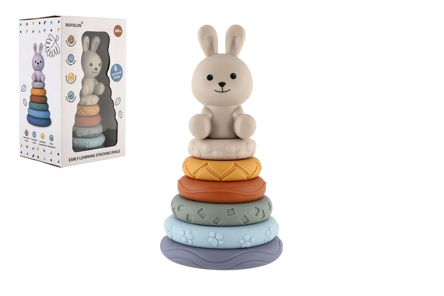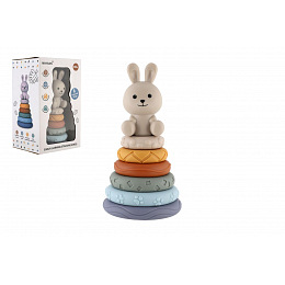 Barevná stohovací pyramida s roztomilým zajíčkem je ideální hračkou pro nejmenší děti. Jednotlivé kroužky mají různé povrchy a textury, které podporují rozvoj hmatu a jemné motoriky. Děti skládáním kroužků na sebe trénují koordinaci pohybů, učí se rozpoznávat velikosti a rozvíjejí logické myšlení.