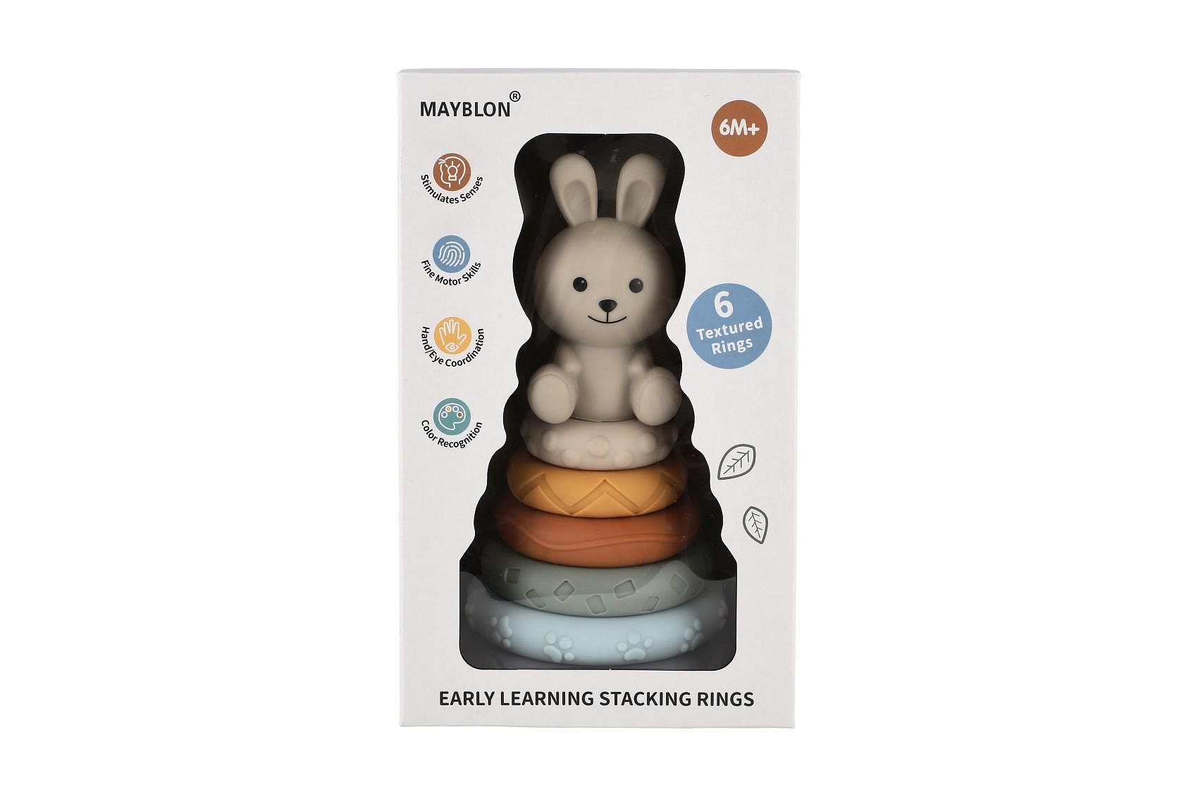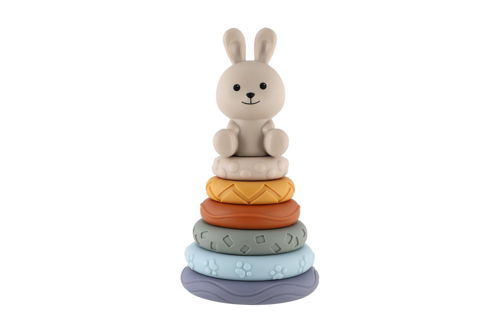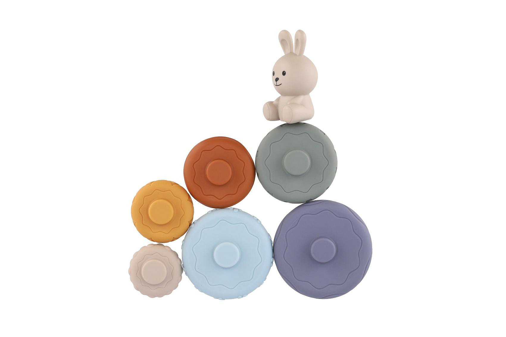 Barevná stohovací pyramida s roztomilým zajíčkem je ideální hračkou pro nejmenší děti. Jednotlivé kroužky mají různé povrchy a textury, které podporují rozvoj hmatu a jemné motoriky. Děti skládáním kroužků na sebe trénují koordinaci pohybů, učí se rozpoznávat velikosti a rozvíjejí logické myšlení.