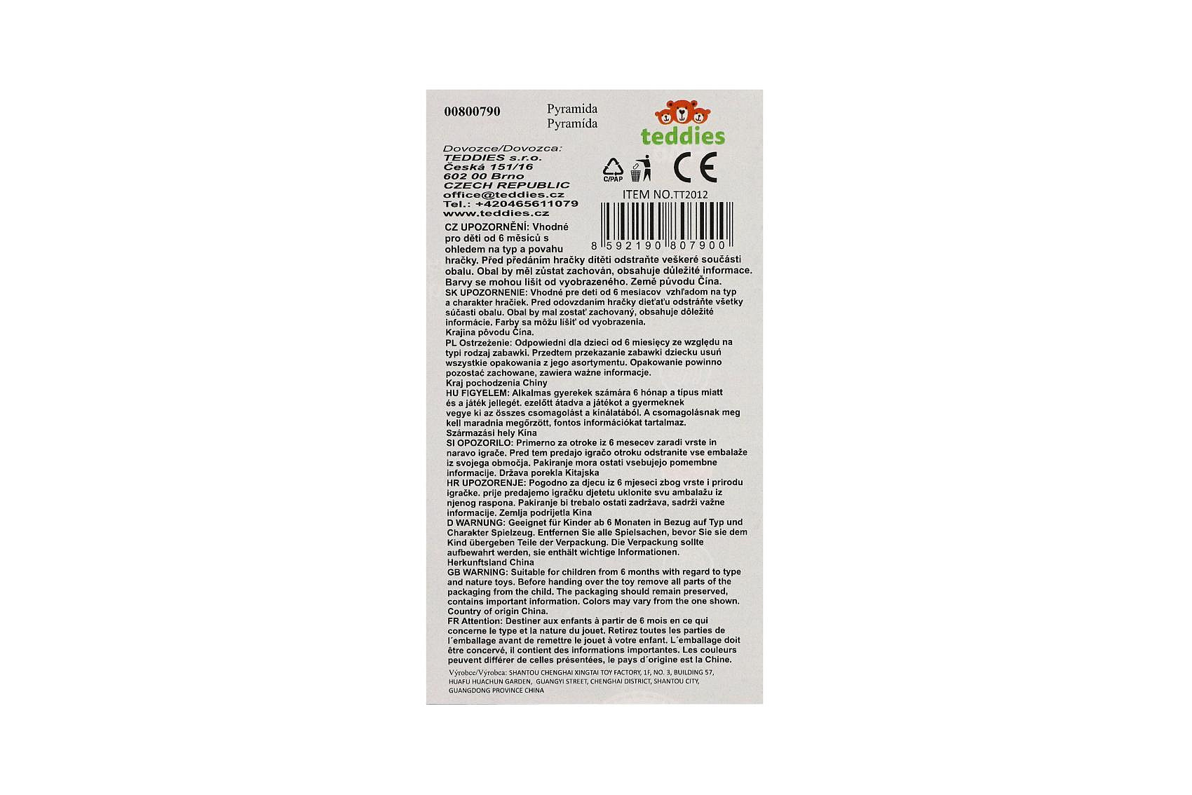 Popis Teddies Pyramida stohovací skládačka 7ks v krabičce 6m+