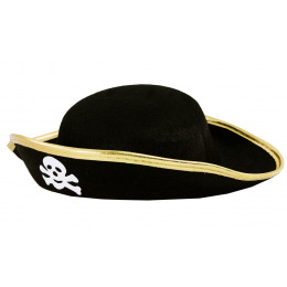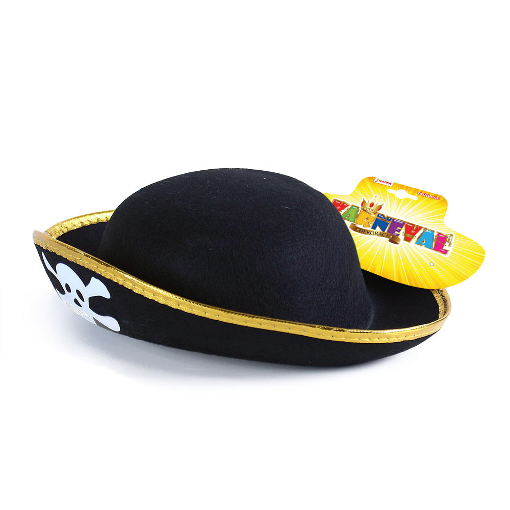Úžasný karnevalový klobúk v štýle pirátskeho kapitána je určený pre dospelých. Čierny zamatový klobúk zdobí potlač pirátskej lebky, červená stuha a zlaté lemovanie. S touto senzačnou parochňou si užijete veľa zábavy. Staňte sa hviezdou karnevalového večierka!