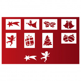 Papírové šablony na umělý sníh. V balení najdete 10 různých vzorů. Velikost šablony je 14 x 20 cm.