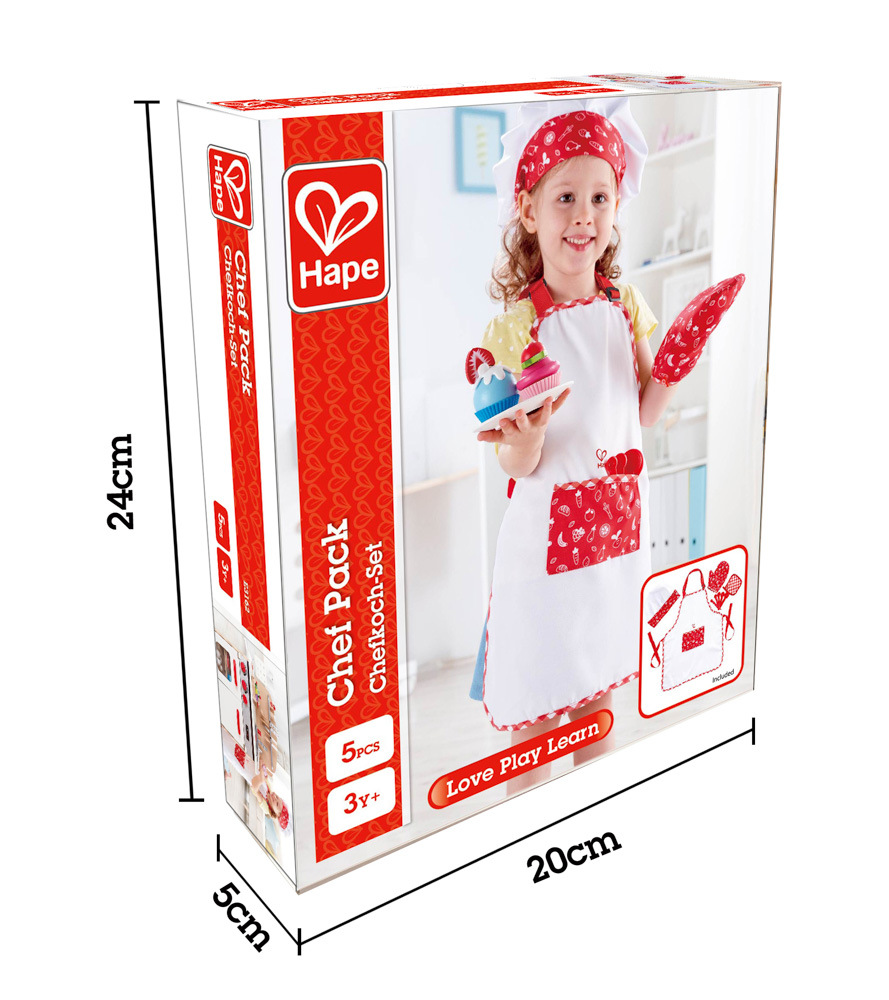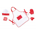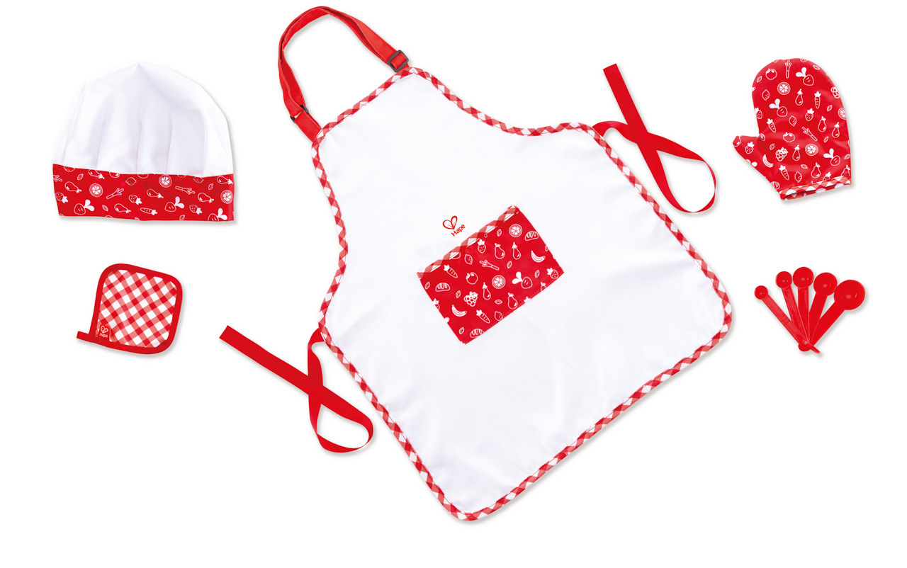 S touto nádhernou sadou pre šéfkuchára uvaríte množstvo fantastických jedál. Zástera, čiapka, rukavice, chňapka a päť odmeriavacích lyžičiek. Farebné prevedenie je vhodné pre chlapcov aj dievčatká. Vyrobené z kvalitného a odolného materiálu.