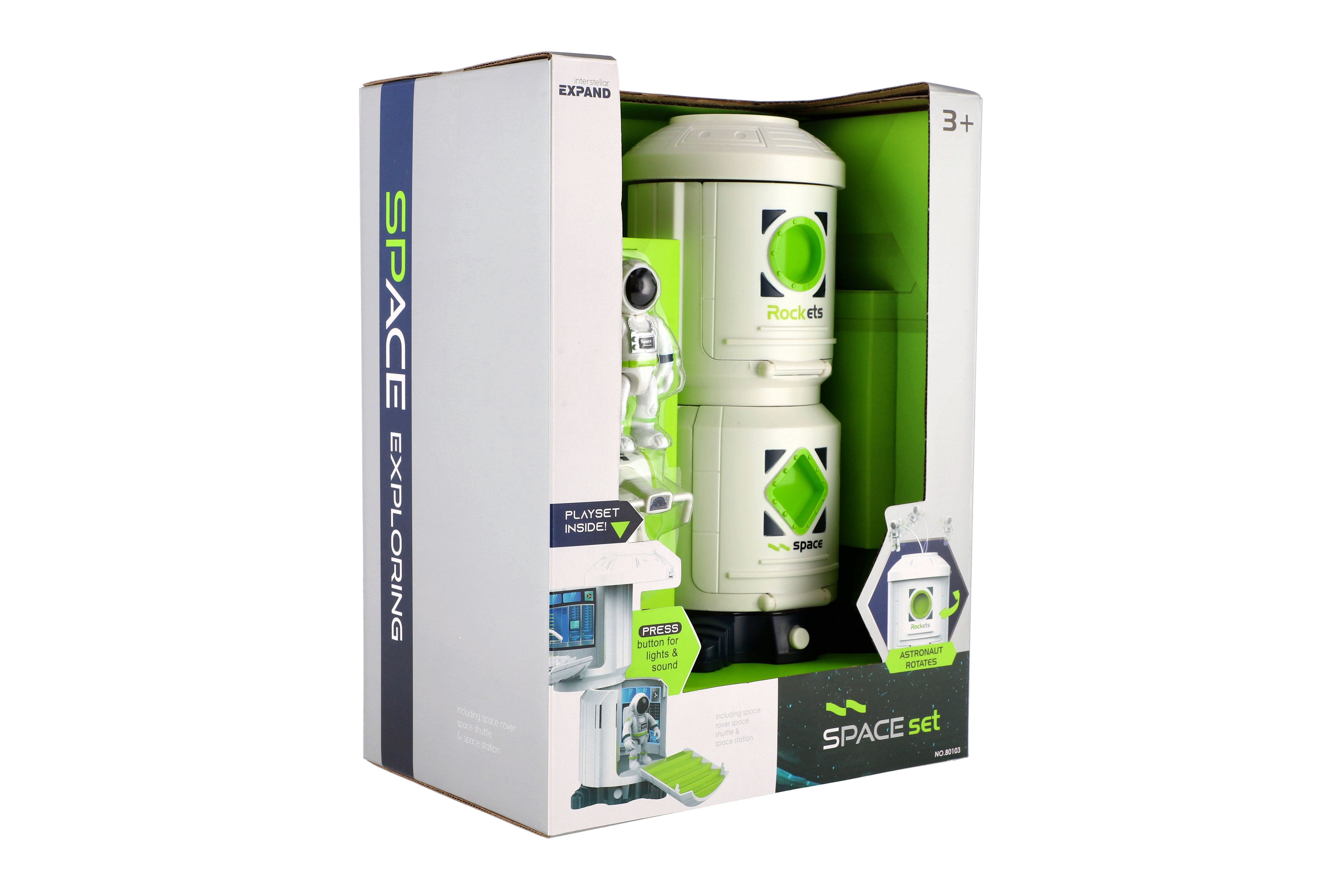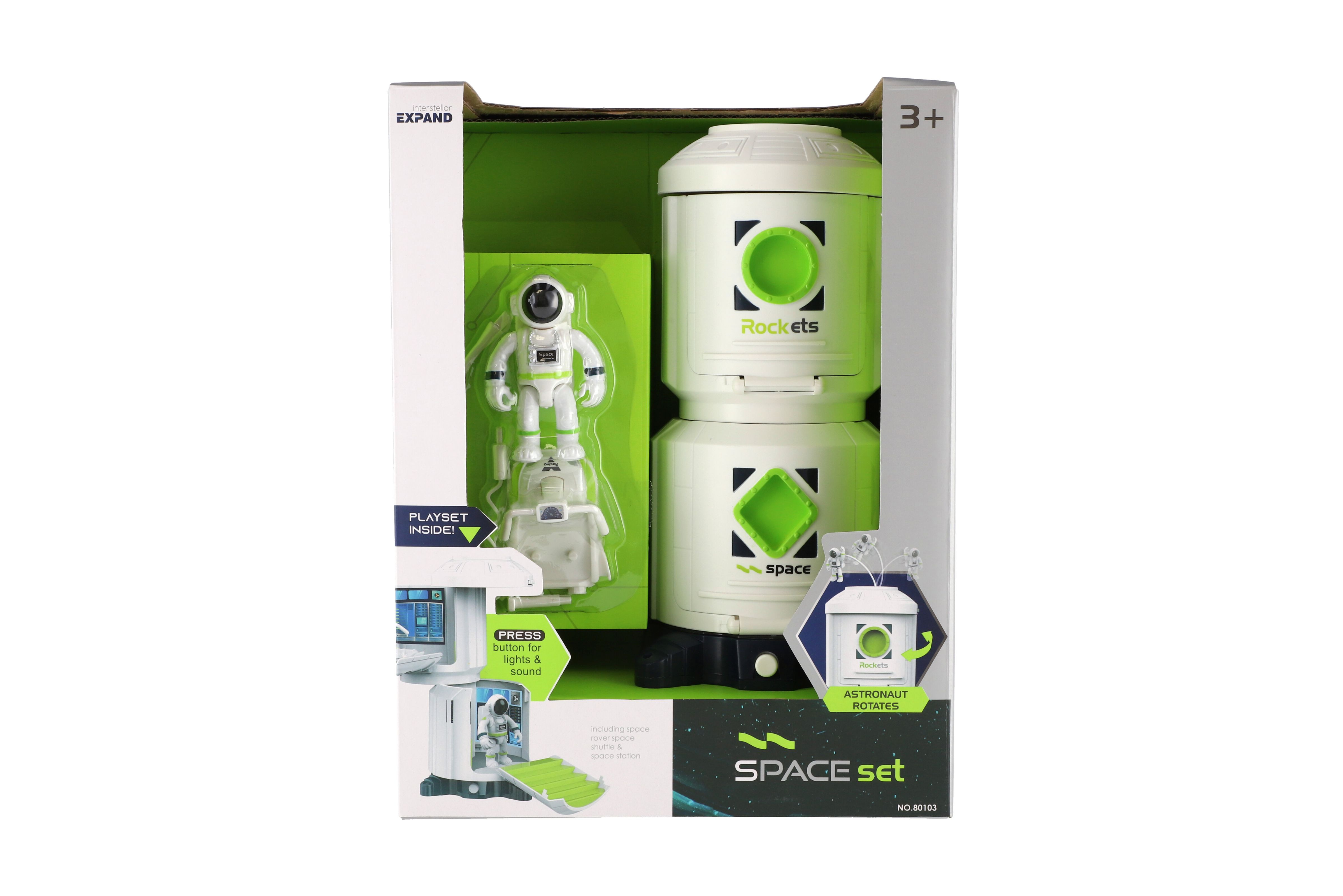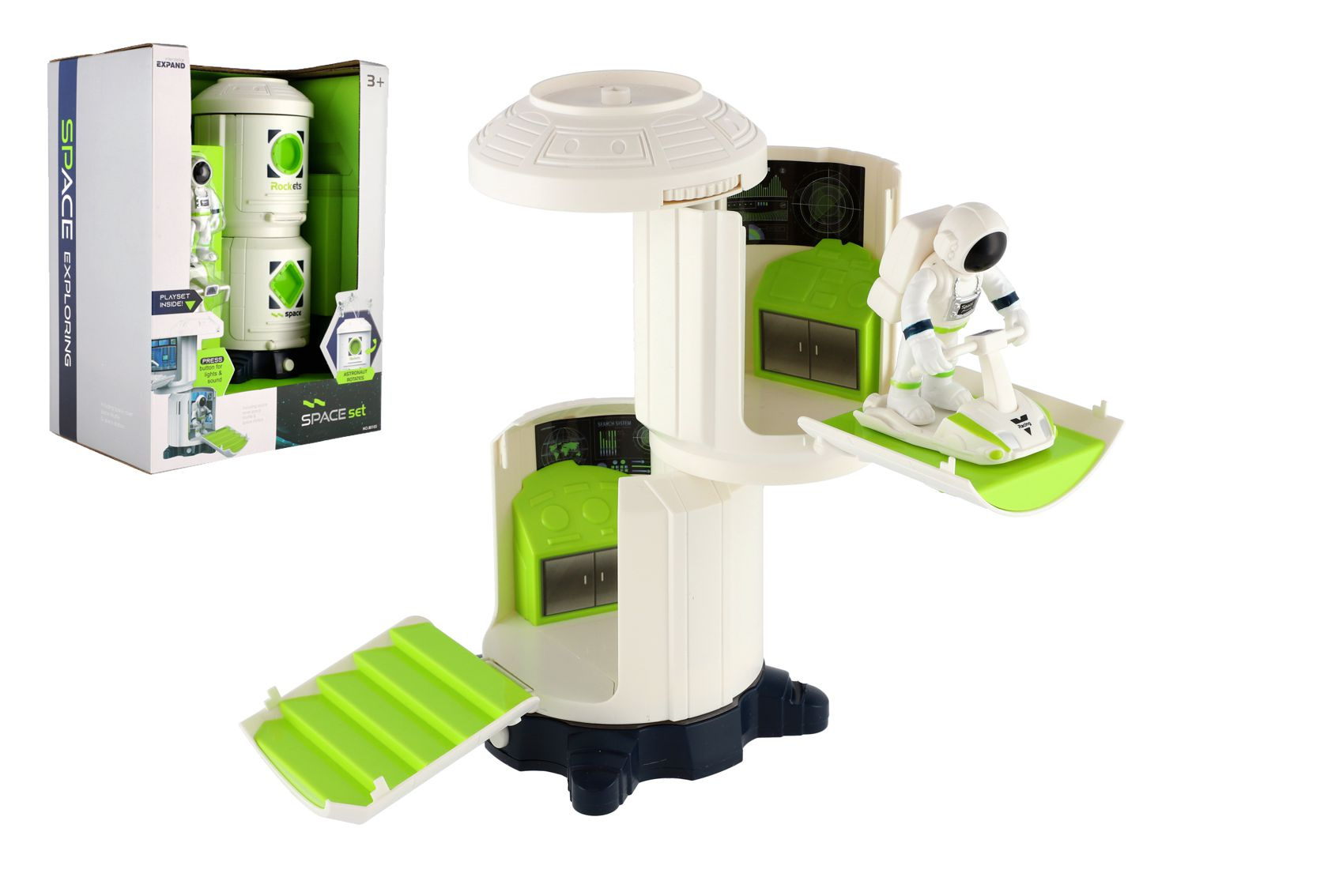 Popis Teddies Sada vesmír plast astronaut, vesmírna stanica na batérie so svetlom, zvukom v krabici 23x30x15cm