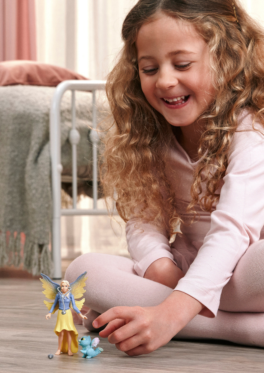 Také bytosti v BAYALA® někdy potřebují péči. Na magické zvířecí farmě nyní žije malé okřídlené koťátko, které je třeba každý den krmit, aby vyrostlo a bylo silné. Elfka Sera s velkými třpytivými křídly pečlivě prohlíží svého svěřence – poslouchá jeho srdeční ozvy stetoskopem a jako preventivní opatření mu dá malou injekci s vitamíny. Možná by se elfce hodila pomoc s péčí o zvířata. Obsah: 1x figurka elfka Sera, 1x figurka okřídlené koťátko, 1x stetoskop, 1x injekční stříkačka. Hrací sada mini figurek funguje samostatně, ale také bez problémů se všemi ostatními výrobky Schleich®. Hrací sada z kolekce POCKET SET je vhodná pro děti od 4 let. Figurky Schleich® podněcují fantazii a zaručují hodnotný herní zážitek plný dobrodružství. Rozměry balení: 19,8 x 13,8 x 5,8 cm. Nevhodné pro děti do 3 let. Věk: 4+