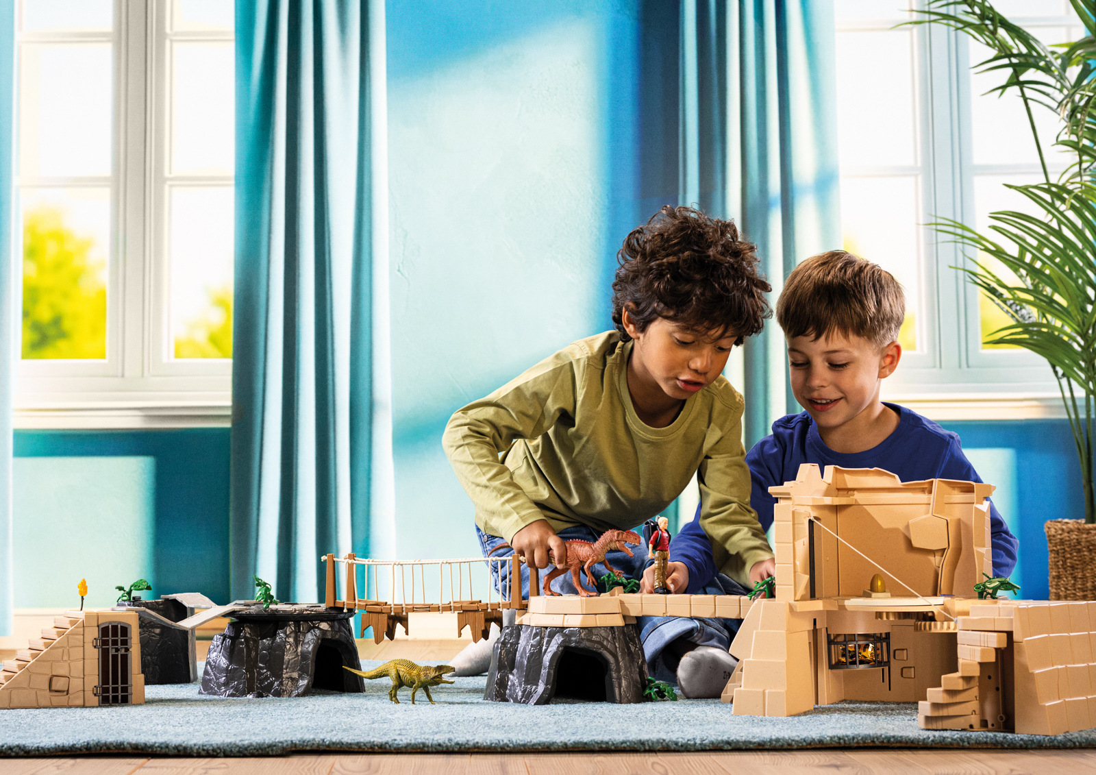 Právě teď se Flynn snaží dostat přes Monolophosaura. Dinosaurus chrání poklad a hrozivě otevírá čelisti. Sotva Flynna objeví, začne ho pronásledovat. Rychle odsud zmizte! Ale jak? Ten visutý most vypadá pěkně prohnile. Flynn patrně balancuje na trámu a snaží se nedívat dolů do propasti. Hotovo! Nyní na něj čeká řada hádanek, které musí vyřešit. Potřebuje všechny části klíče, aby mohl otevřít dveře chrámu k pokladu. Aby to bylo ještě těžší, cesty do chrámu vypadají pokaždé jinak, protože je lze vždy znovu sestavit. Jednotlivé části klíče jsou dobře ukryté a Flynn musí prohledat stěny a najít tajné skrýše. Ale i poté, co najde všechny části klíče a složí je dohromady, dobrodružství ještě nekončí. Ještě se musí odhodlat sklouznout po laně dolů. Právě teď by se mu hodila nějaká pomoc. Kdo to dokáže? Rozměry modelu: 33 x 102 x 42 cm. Počet dílků: 124. Věk: 4-12