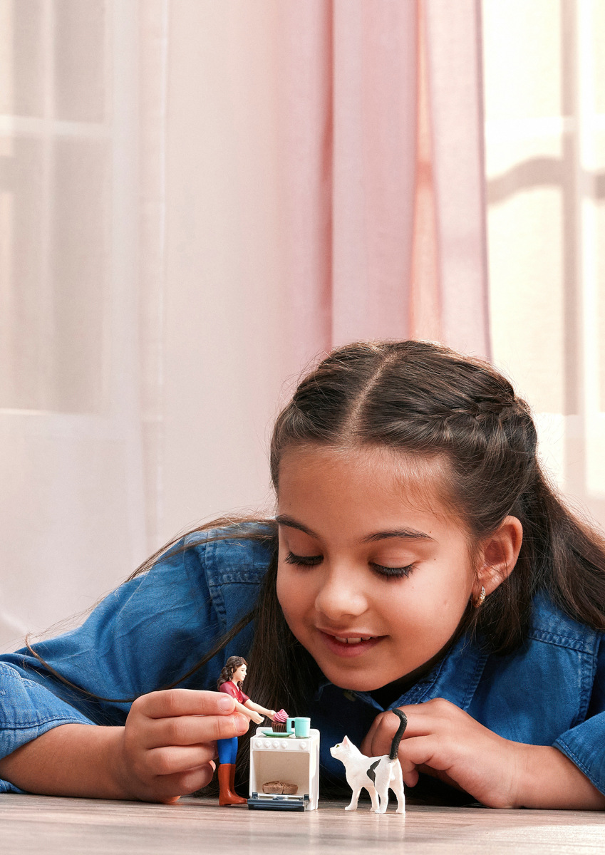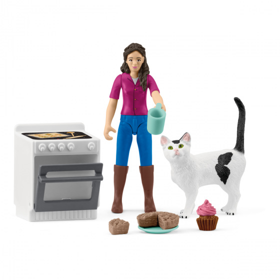 Co to tu tak krásně voní? Ach, Mrs. Kramer tráví odpoledne pečením! Stojí u trouby a vyndavá voňavé cupcakes, zatímco zvědavá kočka jí dělá společnost a pozorně sleduje každý její pohyb. Možná také něco dostane? Mrs. Kramer na to ale vůbec nemyslí – jablečný koláč je přece pro lidi. Na sporáku už je připraven plech se sušenkami. Pokud se kočka bude dívat dostatečně dlouho, Mrs. Kramer jí určitě podá i kočičí pochoutku. Mezitím si vezme šálek kávy, ukrojí si kousek koláče a pustí se do něj. Mňam! Obsah: 1x figurka Mrs. Kramer, 1x kočka, 1x trouba, 1x talíř, 1x kelímek, 4x jablečný koláč, 1x cupcake, 1x arch se samolepkami. Hrací sada mini figurek funguje samostatně, ale také bez problémů se všemi ostatními výrobky Schleich®. Hrací sada z kolekce POCKET SET je vhodná pro děti od 4 let. Figurky Schleich® podněcují fantazii a zaručují hodnotný herní zážitek plný dobrodružství. Rozměry balení: 19,8 x 13,8 x 5,8 cm. Nevhodné pro děti do 3 let. Věk: 4+