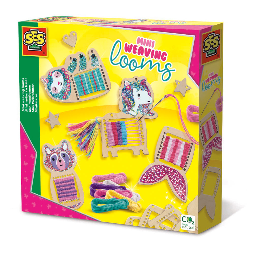 S těmito čtyřmi dřevěnými mini tkalcovskými stavy a šesti barevnými bavlnkami můžete uplést malá roztomilá zvířátka. Nakonec můžete zvířátka odzdobit třpytivými samolepkami. Jaké zvířátko si vyrobíte první? Sada obsahuje: 4 mini tkalcovské stavy, třpytivé samolepky, 6 barevných bavlnek, 1 vyšívací jehla, návod. Rozměr balení: 20 x 20 x 4 cm. Věk: 6+