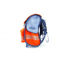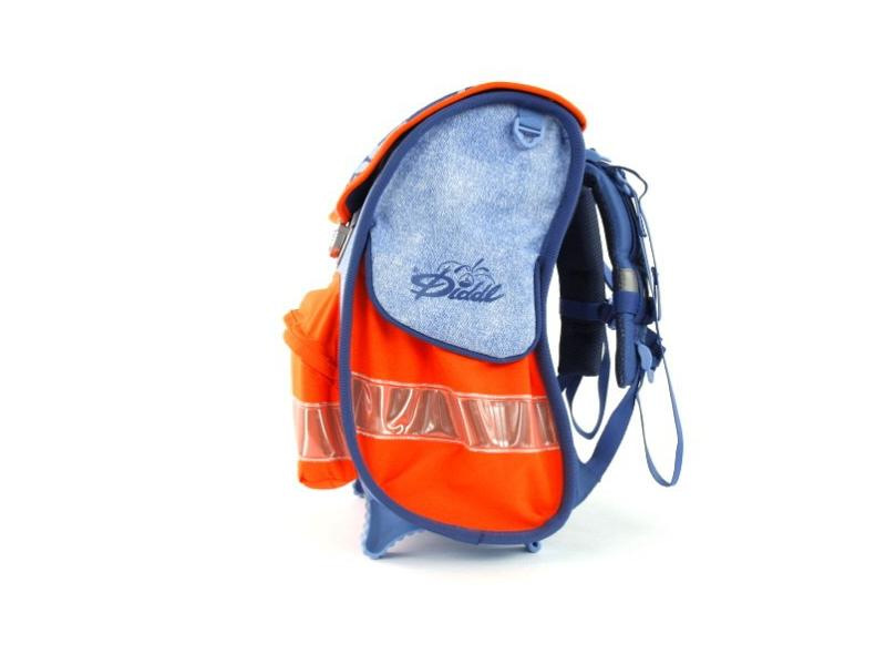 Predná chlopňa je uzatvárateľná na pracku, pútko na zavesenie a veľké predné vrecko na desiatu. Na povrchu výrazné bezpečnostné reflexné prvky.