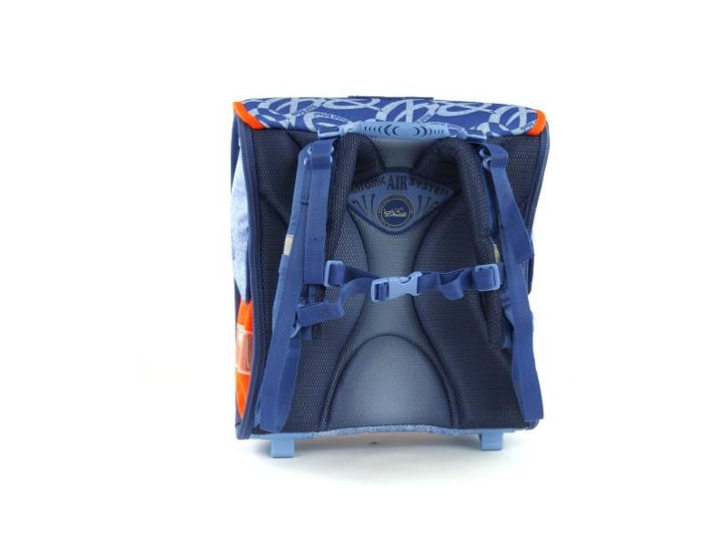 Vnútorný priestor dvojkomorový formátu A4 umožňuje uložiť aj veľké zošity a učebnice. Zadná stena vystužená hliníkovým rámom a opatrená polstrovaním z kvalitných savých materiálov pre pohodlné dlhodobé nosenie.