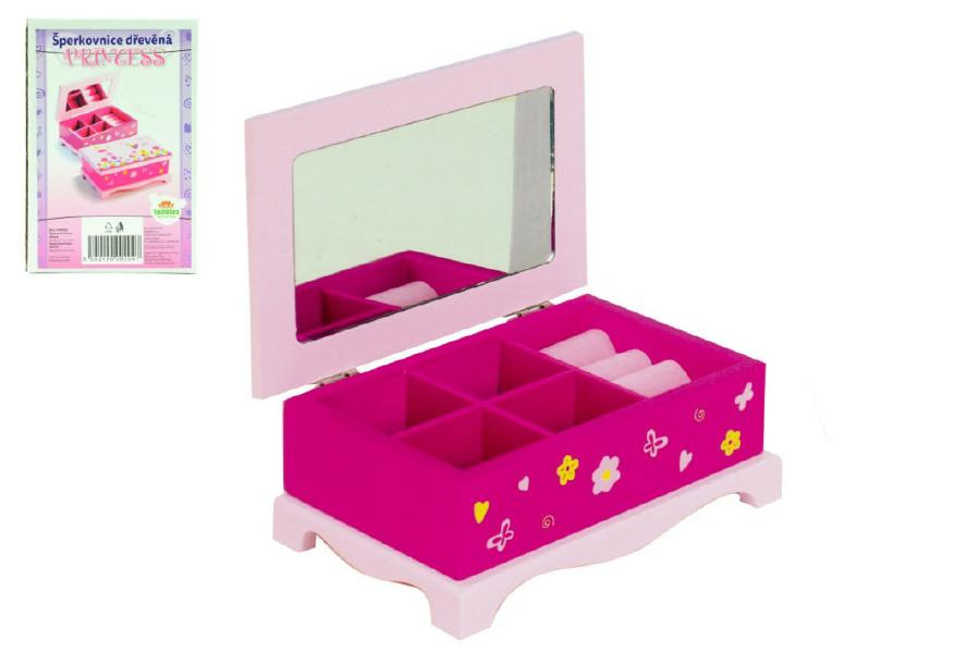 Teddies Skrinka šperkovnica Princess zrkadlo drevo 17x7x11,5cm v krabici