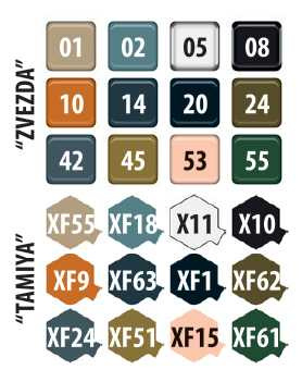 Potrebné farby (Zvezda): - základné: 01, 02, 05, 08, 10, 14, 20, 24, 42, 45, 53, 55
