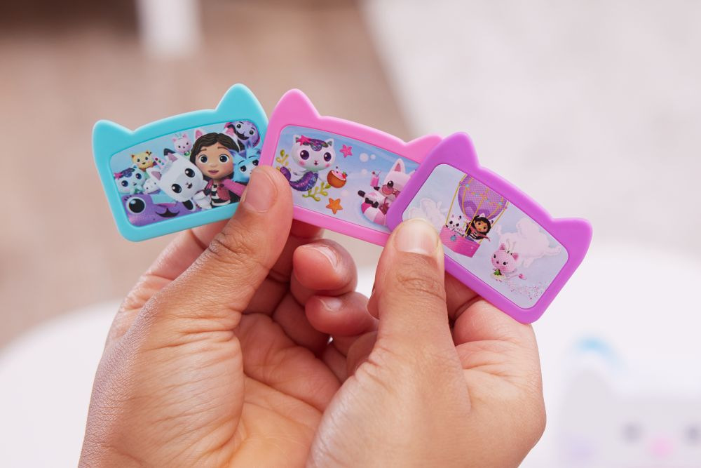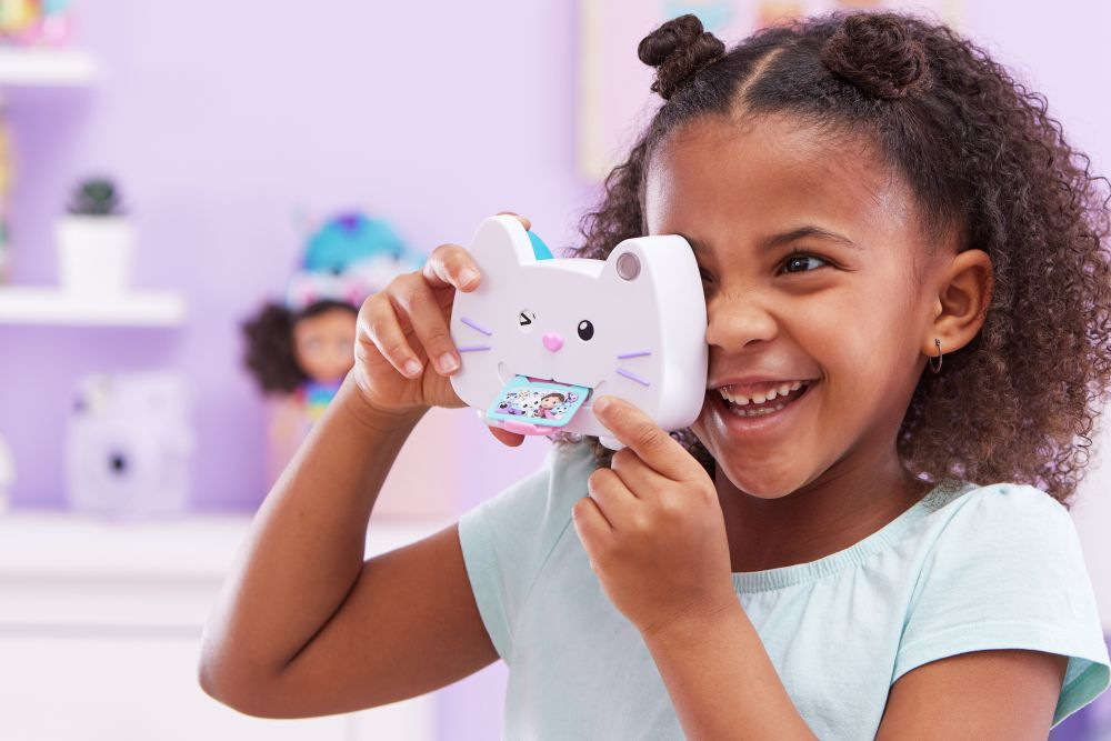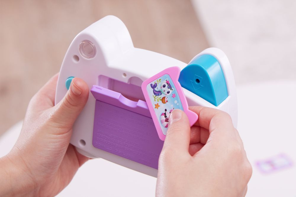 Povedzte syr s Gabbyiným fotoaparátom pre bábiky. Užite si zábavu s veľkými mačkami pri fotení s chlpatými kamarátmi (figúrky a hracie súpravy sa predávajú samostatne). Tento hračkársky fotoaparát v životnej veľkosti má autentický dizajn a štýl Gabyho čarovného domu a určite očarí fanúšikov. Stačí otvoriť panel na zadnej strane fotoaparátu a vložiť tri plastové fotografie. Potom sa pozrite do hľadáčika, povedzte syr a stlačte tlačidlo. Mačka zažmurká a na jazyku sa jej objaví fotografia. Na fotoaparáte sú aj farebné tlačidlá, ktoré možno stláčať a otáčať, takže slúži ako roztomilá hračka pre neposedné ruky. A ak chcete zažiť ešte jedno prekvapenie, naskenujte QR kód na stránke produktu a nainštalujte si bezplatnú aplikáciu Gabby's Dollhouse (dostupnú pre iOS a Android). Gabby's Dollhouse plyšáci, bábiky, figúrky a hracie súpravy sú ideálnymi hračkami pre predškolákov, ktorí radi zažívajú fantazijné dobrodružstvá vo svojej predstavivosti. Ak chcete zažiť ešte viac vzrušujúcich hier, vyskúšajte kuchyňu "Cakey" a rúru "Bakey with Cakey", ktoré ešte viac rozšíria svet čarovného domu. Prineste si domov super roztomilý hračkársky fotoaparát a predstierajte, že fotíte rovnako ako Gabby s Gabbyiným fotoaparátom pre bábiky.