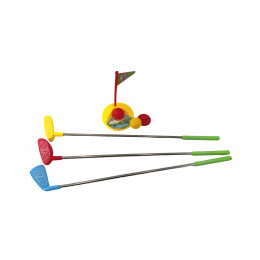 Súčasťou sady sú 3 golfové palice, loptičky a jamka.