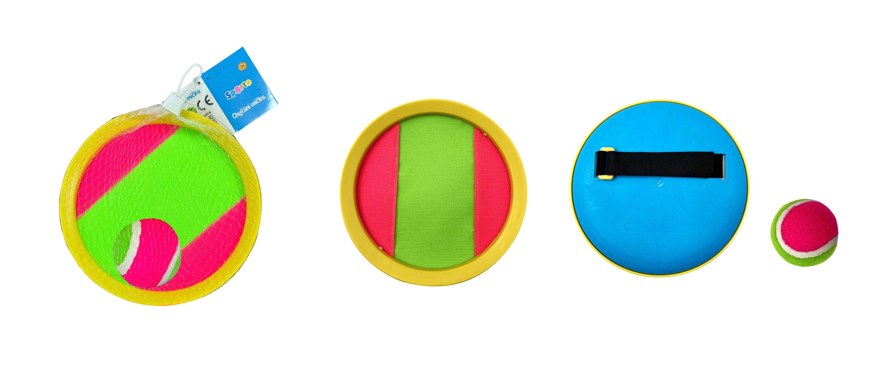 Športová hra na leto. Chyť loptičku na pálku, ktorý je na suchý zips.