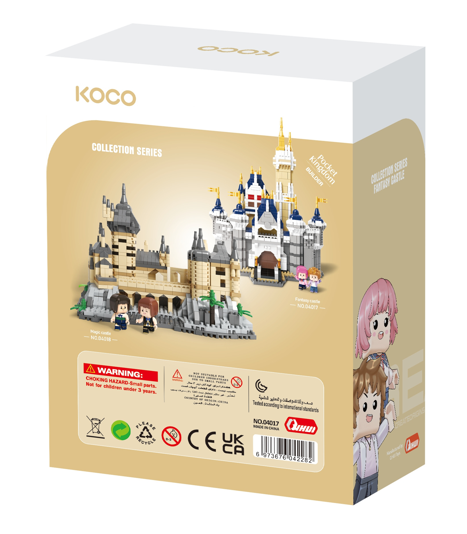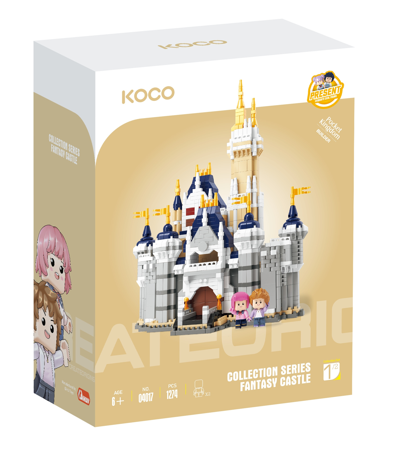 Stavebnice KOCO, to jsou velké příběhy v malých detailech. Sestavte si krásný model hradu. Skvělý tip pro procvičení jemné motoriky rukou. Balení obsahuje podrobný obrázkový návod. Tento detailně propracovaný zámek s věžemi, vlajkami a barevnými střechami potěší všechny malé i velké stavitele. Počet dílků: 1274 ks Velikost složeného modelu: 16 x 20 x 10 cm. Rozměry balení 15 x 20 x 8 cm. Vhodné pro děti od 6 let.