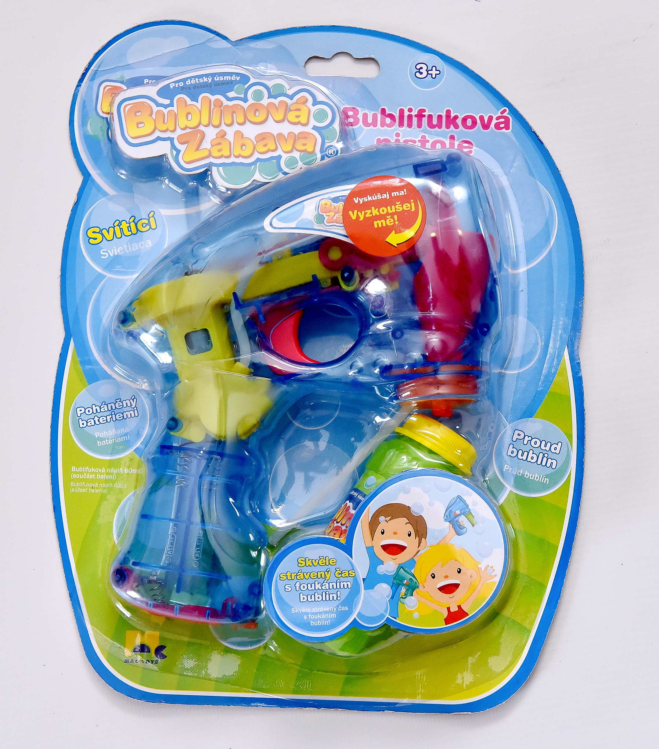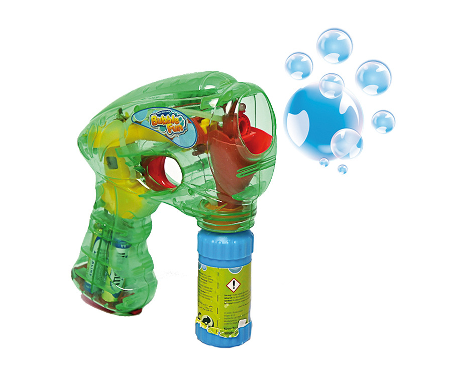 Bublifuková pištole, ktorá pri výrobe bublín svieti. Stlač spúšť a sleduj záplavu bublín.