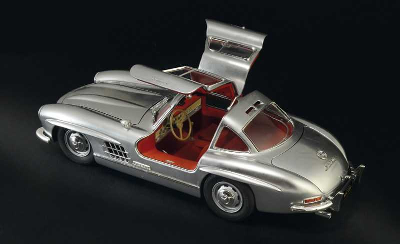 Informácie o originále: Mercedes-Benz 300 SL vyrobila svetoznáma nemecká automobilka v roku 1954. Jednalo sa o majstrovské dielo na štyroch kolesách, či už z pohľadu designu, elegancie, alebo luxusu. SL v jeho názve je skráteninou slov Sport Leicht (športový a ľahký). Toto dvojmiestne kupé dostalo do vienka na svoju dobu veľmi inovatívne riešenie. Jeho konštrukcia stála na trubkovom ráme a pohonnou jednotkou bol pozdĺžne uložený motor s objemom 2,996 litra, ktorého výkon prenášala 4-stupňová prevodovka na zadnú nápravu. Vďaka tomu dokázal 300 SL dosiahnuť maximálnu rýchlosť 260 km/h. Najväčšou silou tohto vozidla však bol jeho originálny, inovatívny dizajn podčiarknutý typickými čajkovými krídlami, teda dverami vyklápajúcimi sa smerom nahor. Mercedes-Benz 300 SL je tak dizajnovou legendou, ktorá prežila svoju dobu, a dodnes predstavuje skutočnú ikonu pre všetkých zberateľov i fanúšikov.