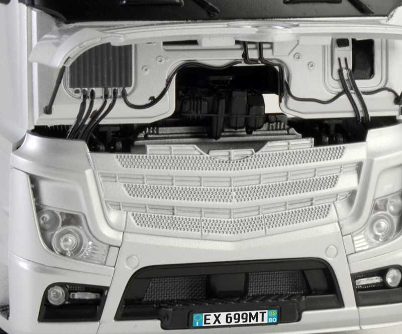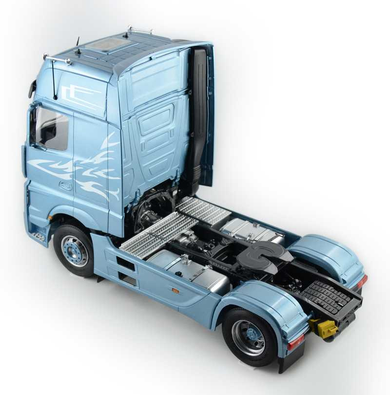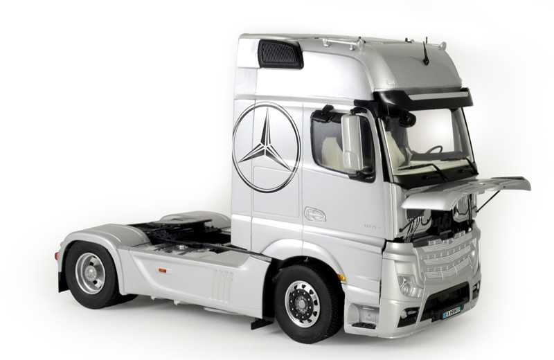 Informácie o originále: Actros je meno radu ťažkých ťahačov od spoločnosti Mercedes-Benz. Na trh boli uvedené v roku 1995 a rýchlo dosiahli značný obchodný úspech ako ideálne stroje pre diaľkovú ťažkotonážnu prepravu. Nový Actros, ktorý bol predstavený v roku 2012, je najmodernejším a najinovatívnejším členom tejto rodiny ťažkých ťahačov od Mercedesu. Vyznačuje sa predovšetkým pokrokovým a moderným dizajnom a tiež novými motormi spĺňajúcimi normy Euro 5 a Euro 6. Tento automobil bol navrhnutý tak, aby dokázal zaručiť čo najvyššiu pracovnú efektivitu a zároveň znížiť prevádzkové náklady na minimum. Z niekoľkých variantov, ktoré sú v ponuke, je obzvlášť zaujímavá verzia “GigaSpace” so zvýšenou strechou. Tá bola vyrobená s ohľadom na čo najvyššiu úroveň pohodlia hneď pre dvoch vodičov. Vďaka jej vlastnostiam je možné Actros GigaSpace považovať za jeden z najlepších prostriedkov pre medzinárodný diaľkový transport vôbec.