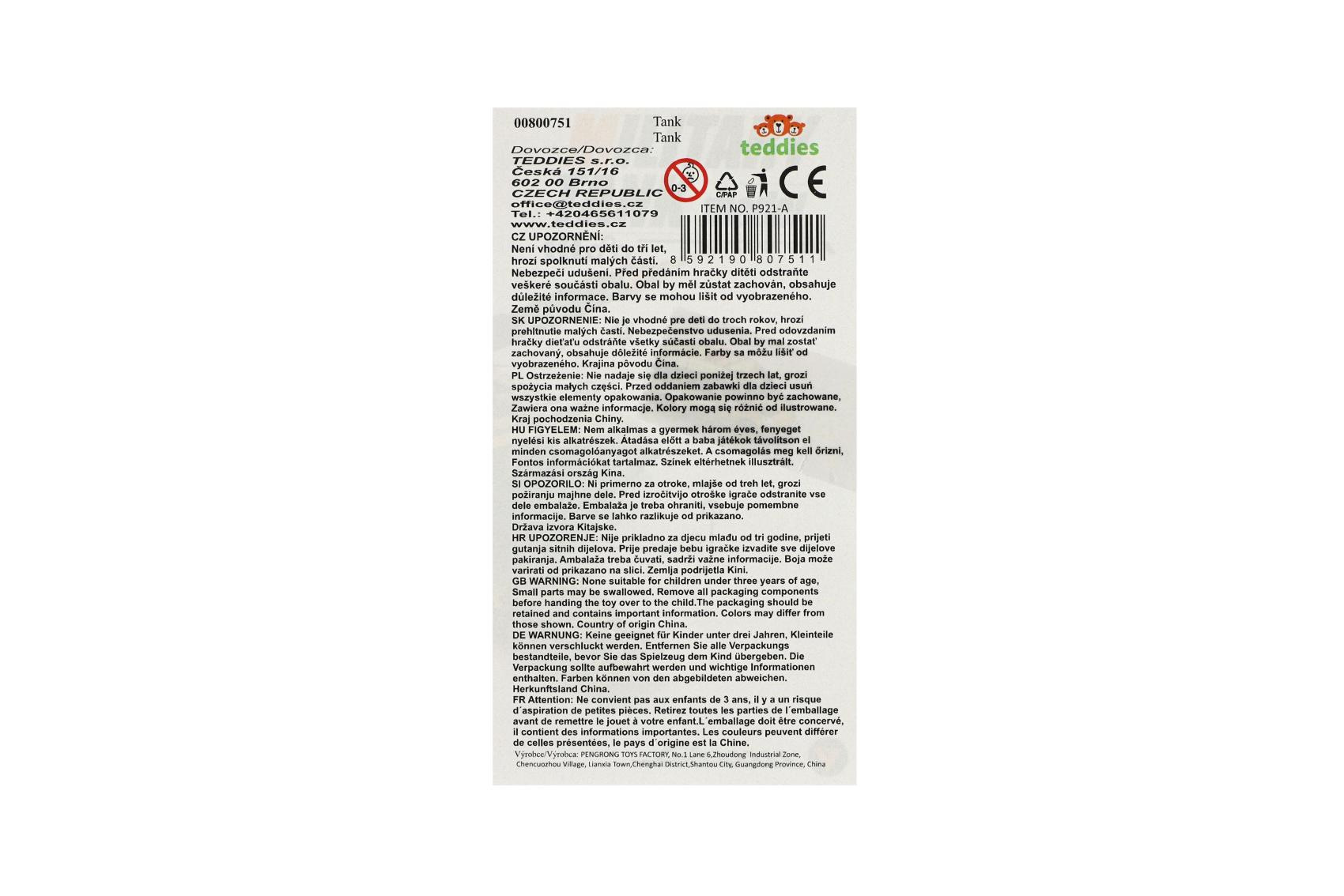 Popis Teddies Tank s doplňky plast 13x25cm na volný chod v krabici 28x15x13cm