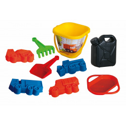 Veselé malé nákladné auto - sklápač piesku. Obsahuje vedro, naberačku a formu. Rozmery: 20 x 14,5 x 18 cm.