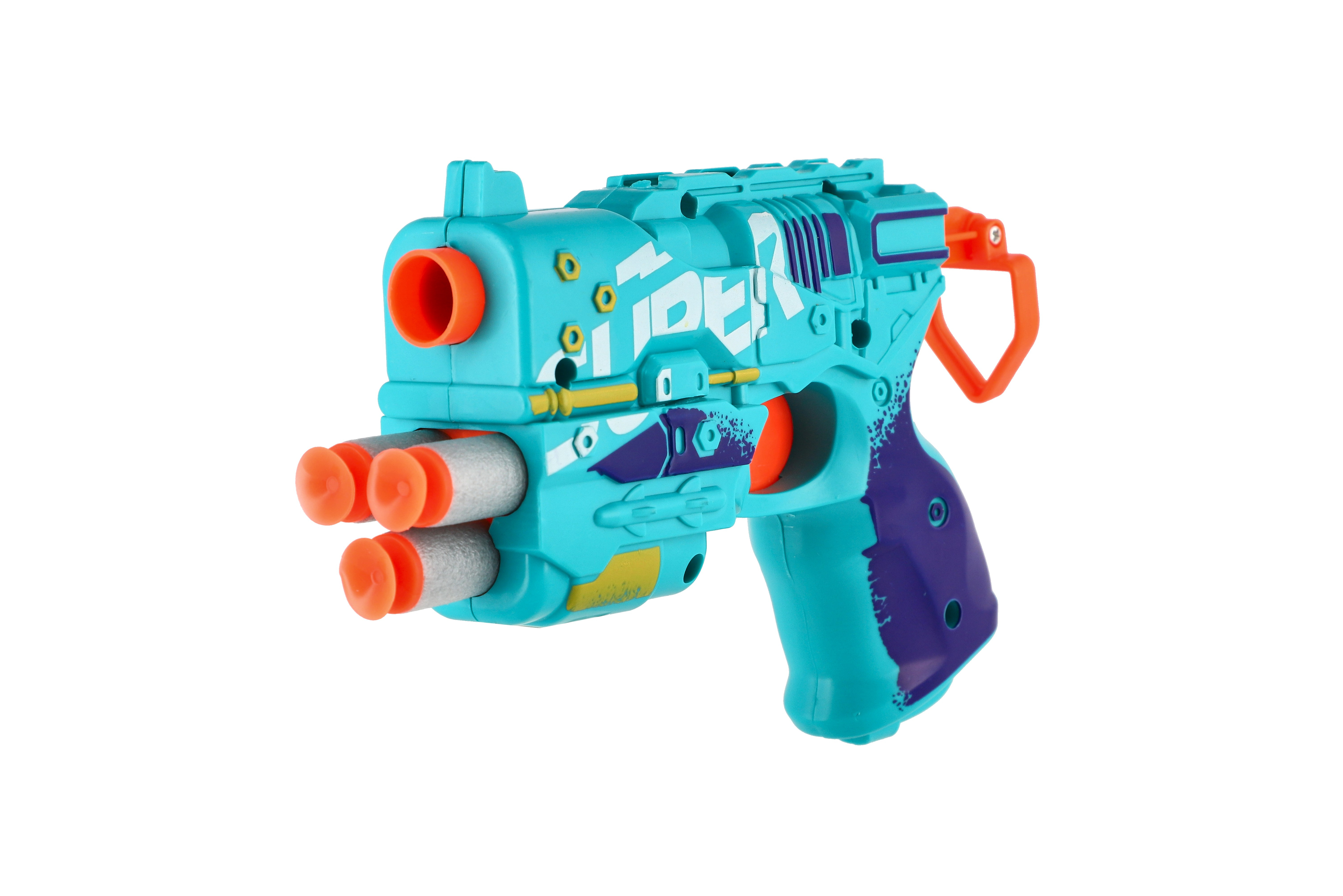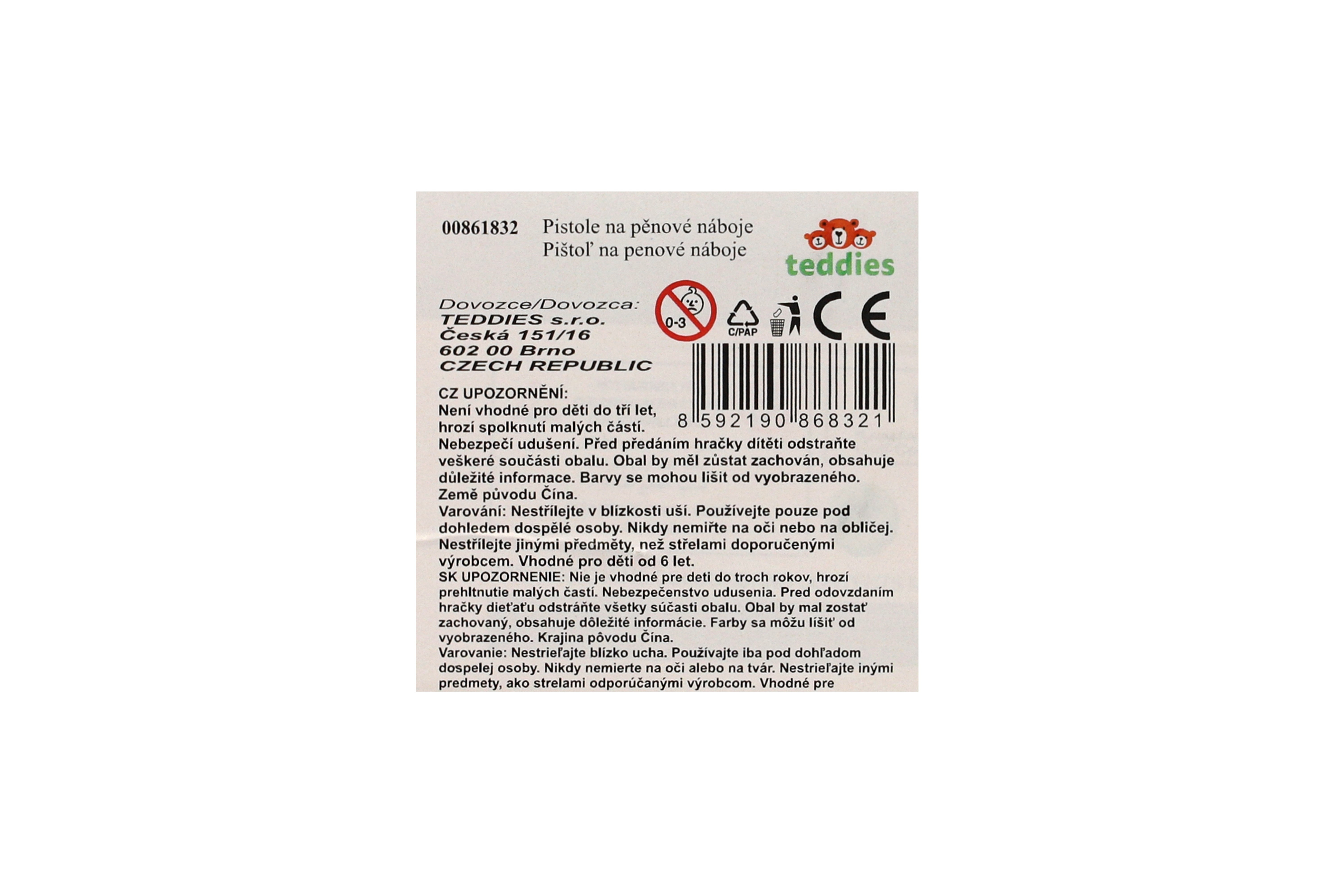 Hravá zábava nejen pro kluky! Pistole na pěnové náboje zabaví každého malého pistolníka. Náboj umístěte do komory pistole a natáhněte kohoutek. Teď už stačí jen dobře zamířit a vystřelit na jakýkoli cíl, např. na lezoucího mimozemšťana po skle. Sada obsahuje 3 ks pěnových nábojů. Rozměry balení 18 x 21 x 5 cm. Vhodné pro děti od 6 let.