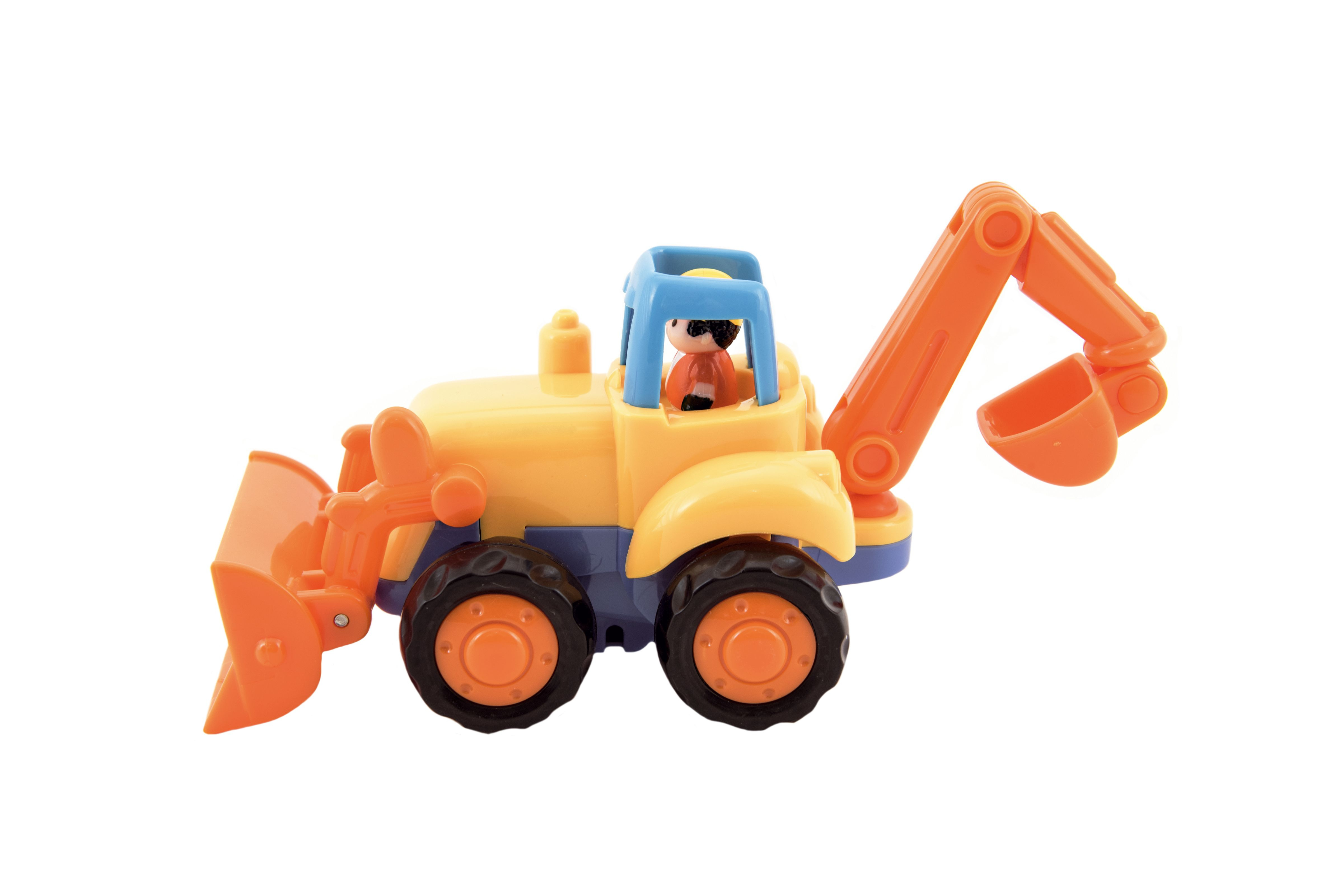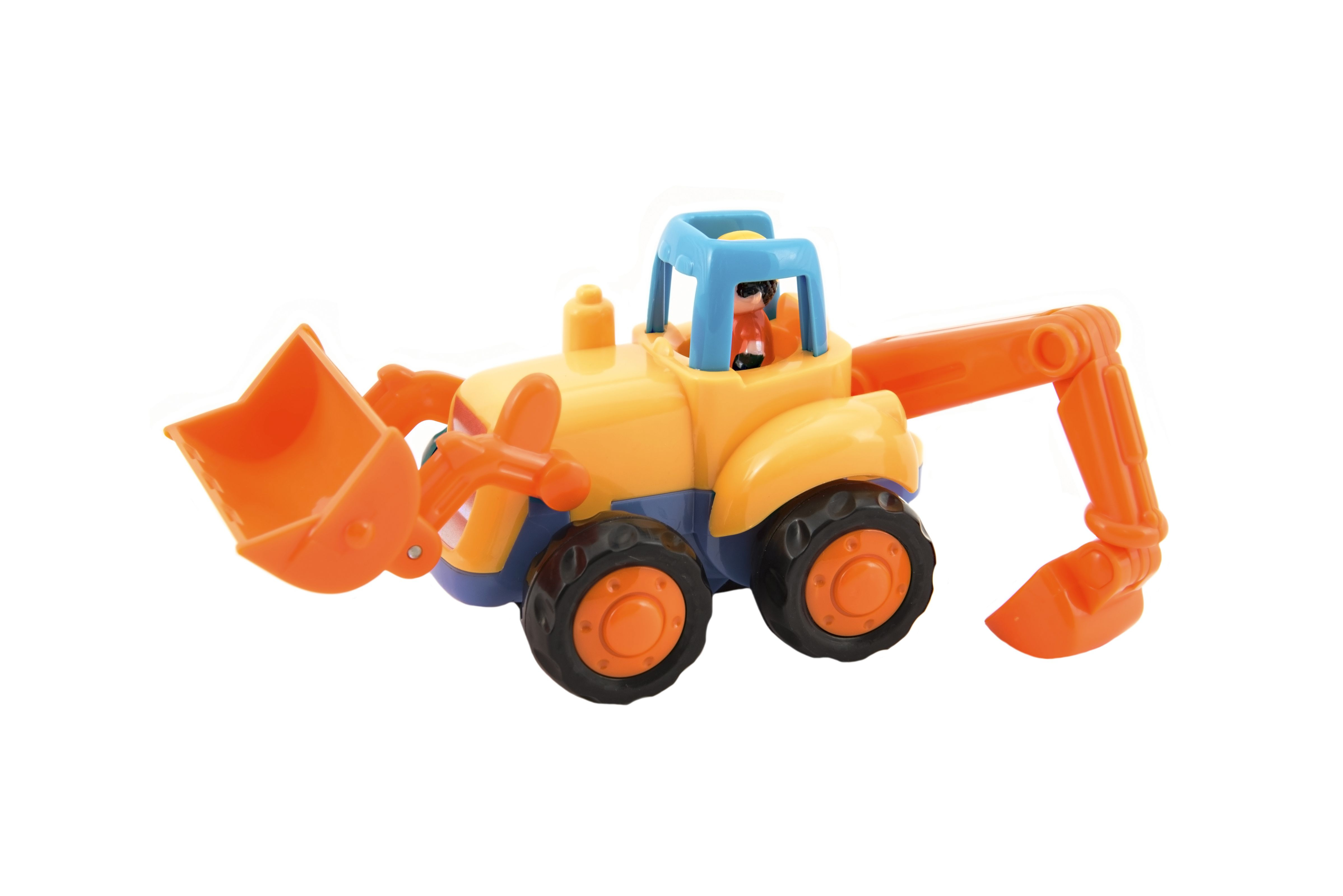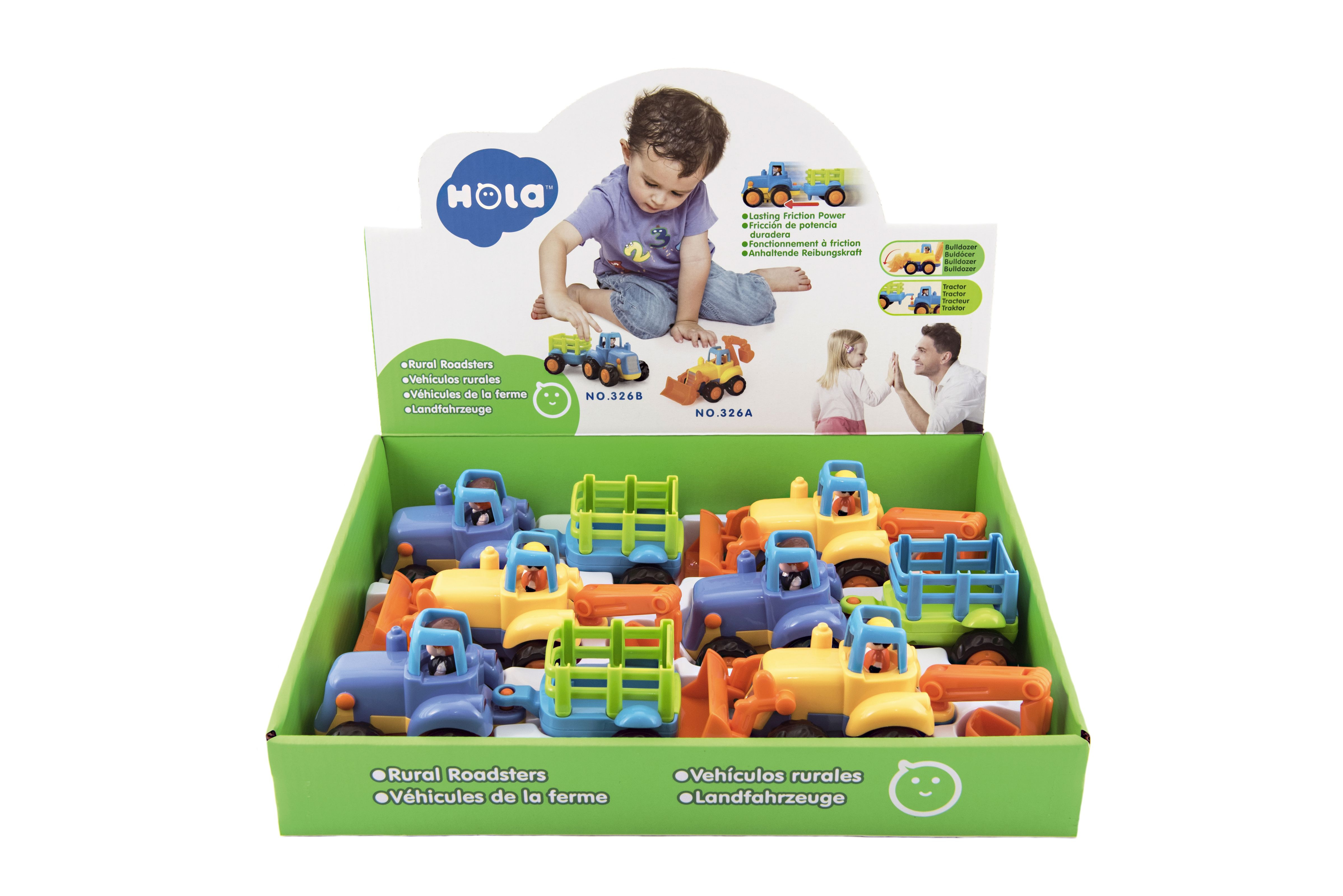 Teddies Traktor s vlekom/Buldozér plast 16cm pre najmenších na zotrvačník