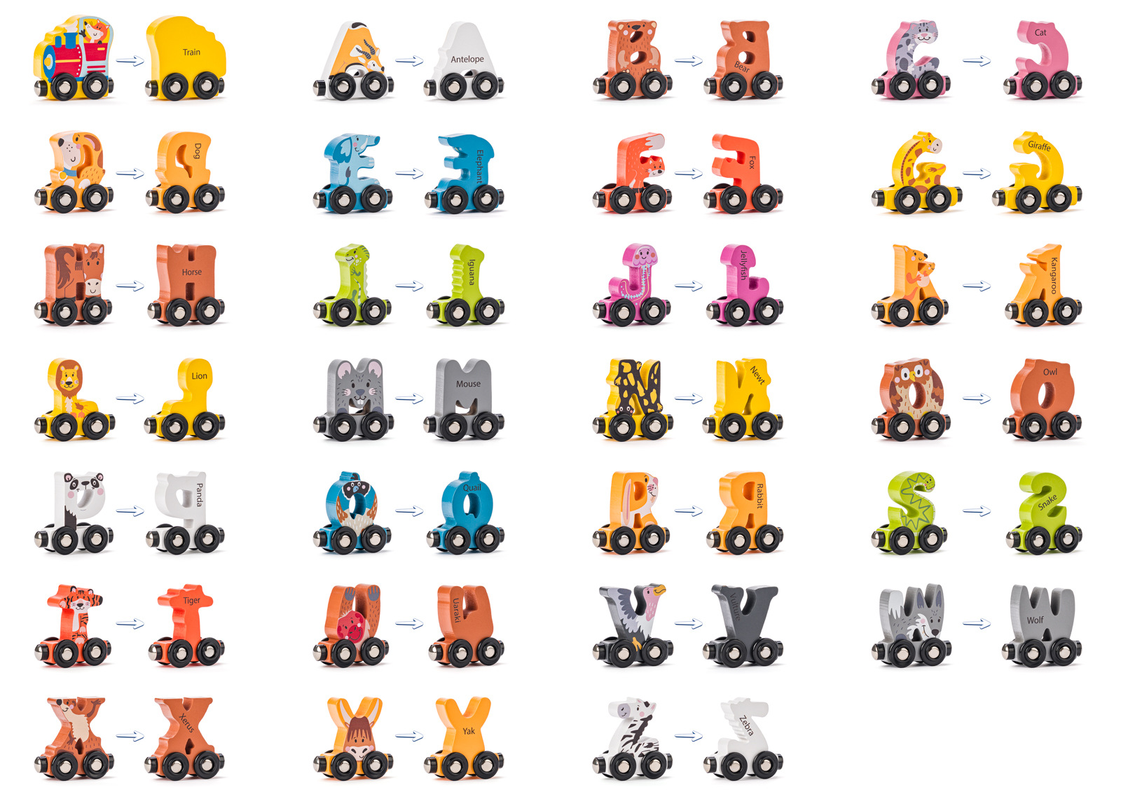 Woody Vláček s abecedou - Zvířátka s AJ, 27 dílů