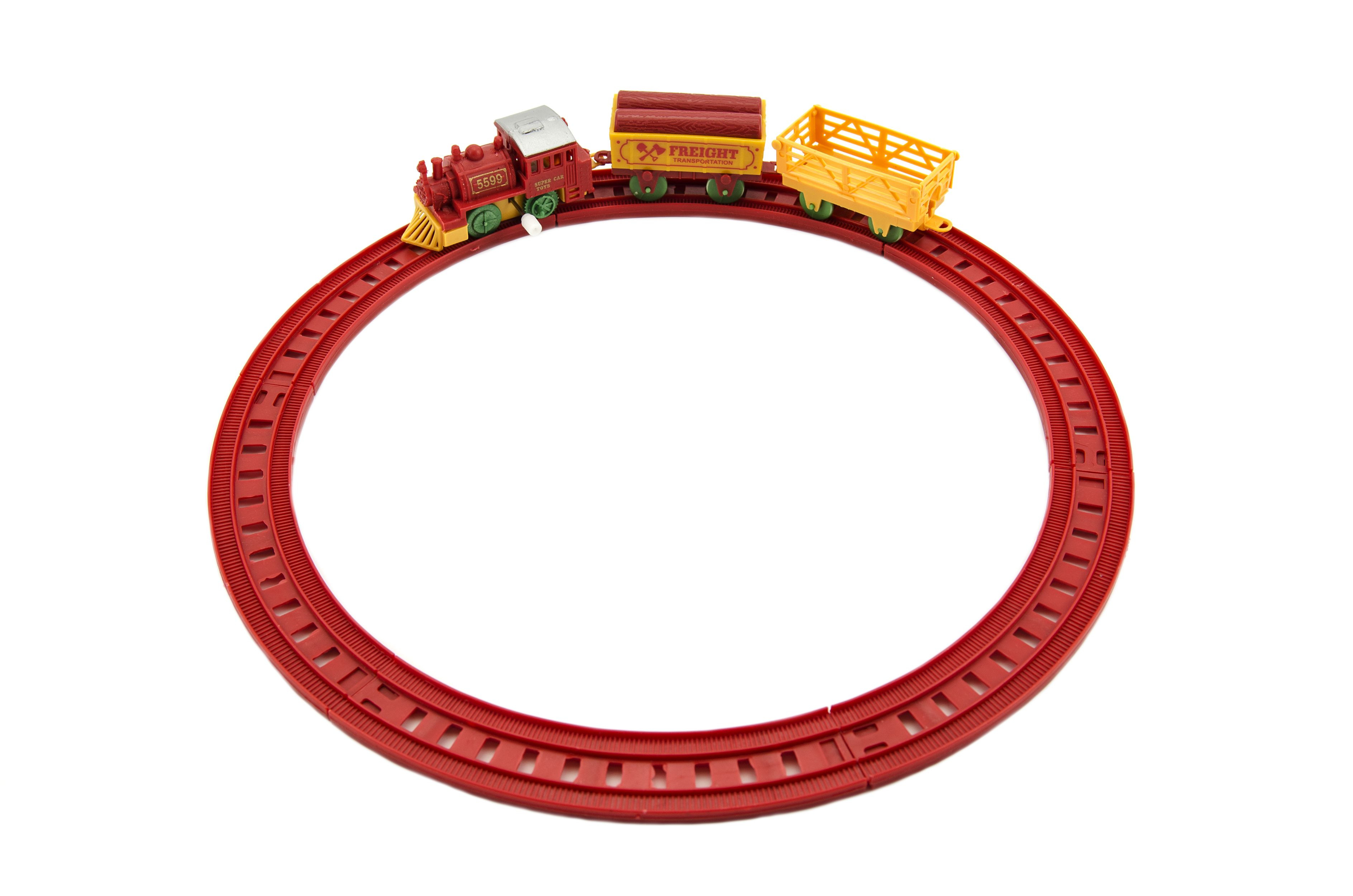 Teddies Vlak + 3 vagóny s koľajnicami 8ks na batérie so zvukom so svetlom v krabici 41x28x6cm