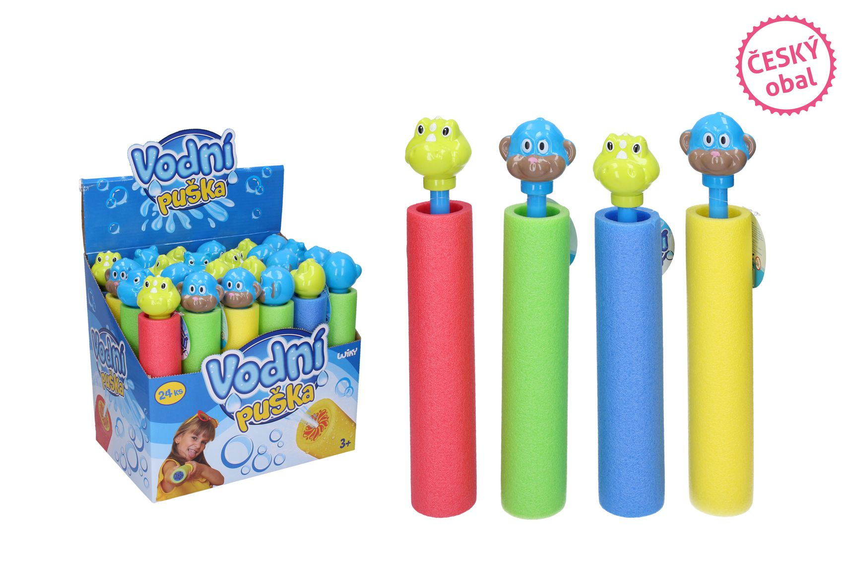 Wiky Vodná trubica/puška zvieratko penová 27x5cm 3 druhy 24ks v boxe