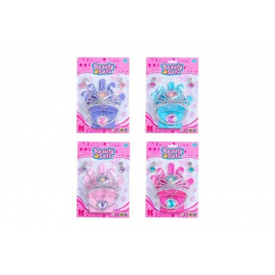 Wiky Sada krásy plast korunka, náhrdelník, náušnice, rukavičky 3 farby na karte 17,5x27,5cm
