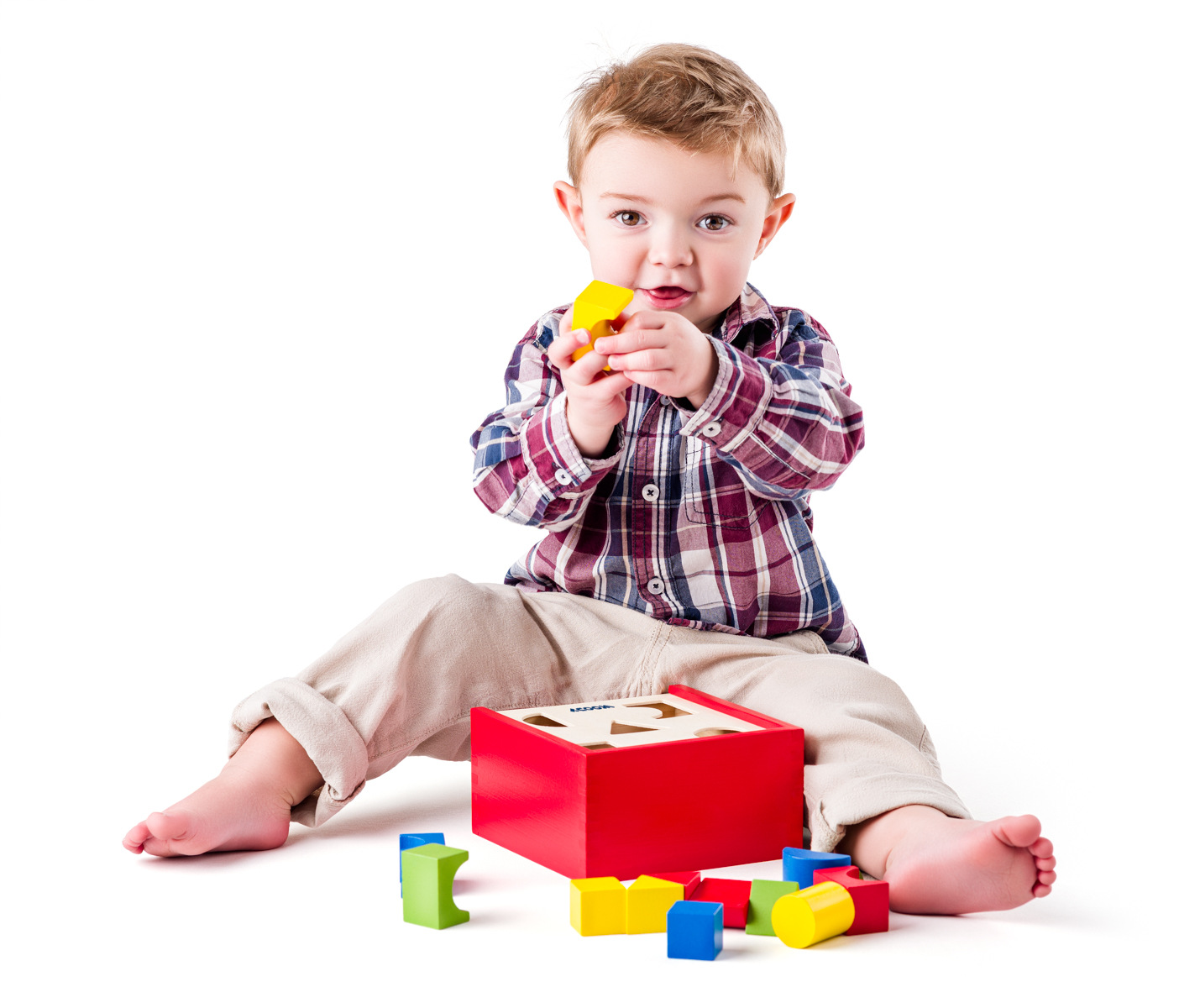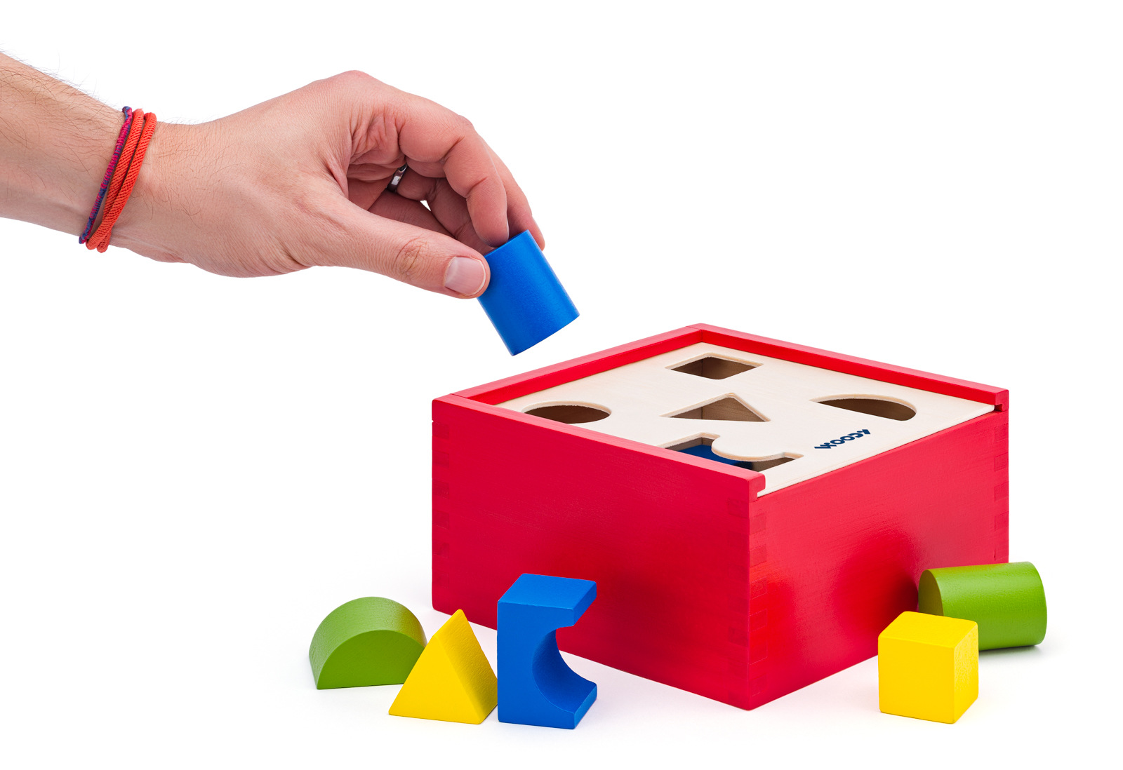 Táto vkladacia krabička je vyrobená tak, aby dieťa mohlo prestrčiť daný tvar iba príslušným otvorom. Žiadny z obsiahnutých tvarov neprejde iným otvorom, než ktorým je určené. Pomocníkom pre dieťa budú aj farby. Každý otvor je ohraničený farbou príslušného tvaru. Na veku týchto farebných pomocníkov nenájde a môže to teda skúsiť aj bez nich. Po vložení všetkých tvarov vysunie veko a môže vkladať znova.| Vek: 2+ | Rozmer: 13,5 x 13,5 x 14 cm