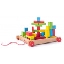 Vozík obsahuje 34 farebných kociek. Dieťa sa učí rozlišovať ich farby a tvary, stavať s nimi a ukladať ich späť do vozíka. Hračka rozvíja jemnú motoriku a logiku.| Rozmer: 25,5x20x4cm | Vek: 2+prečítajte si viac