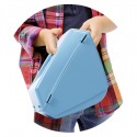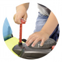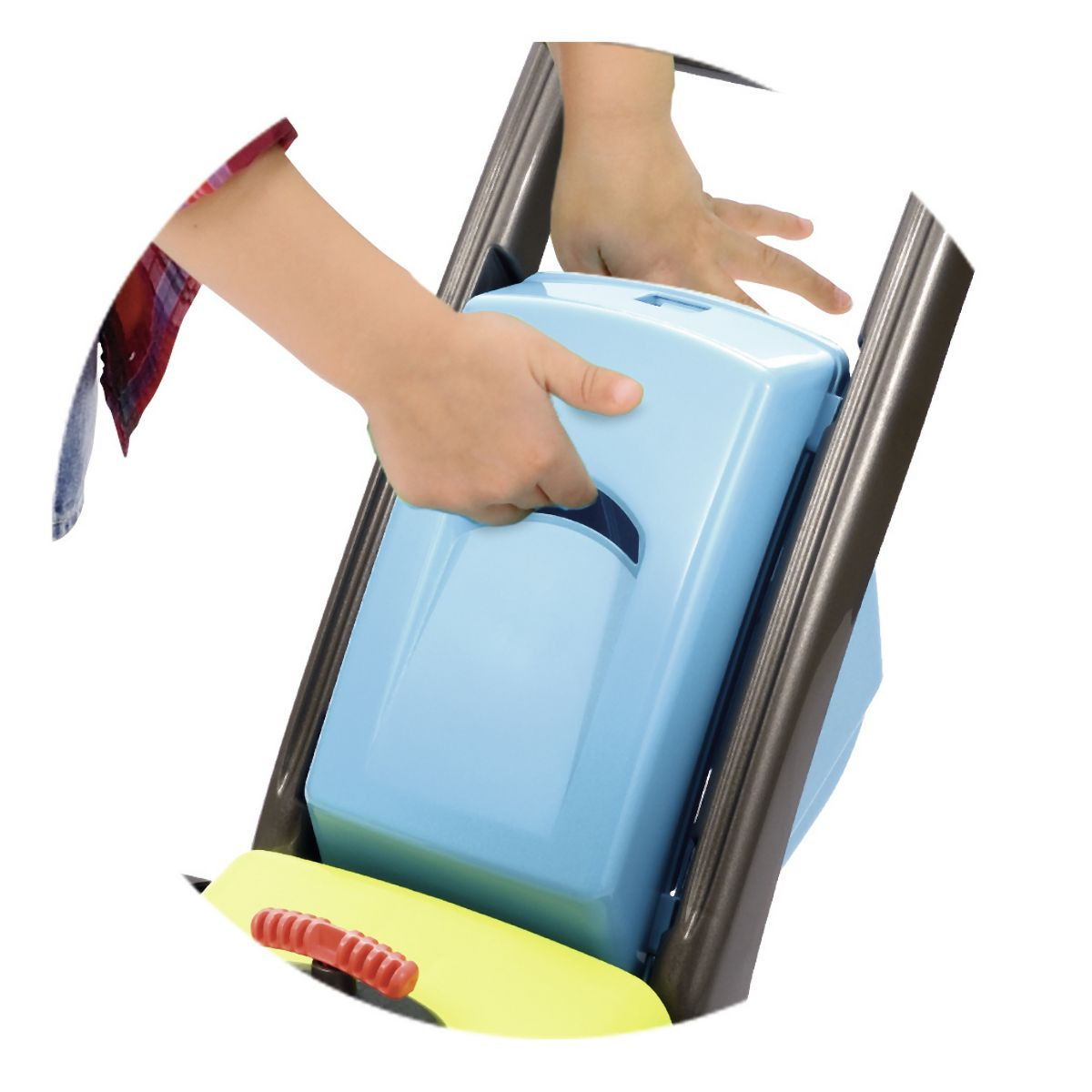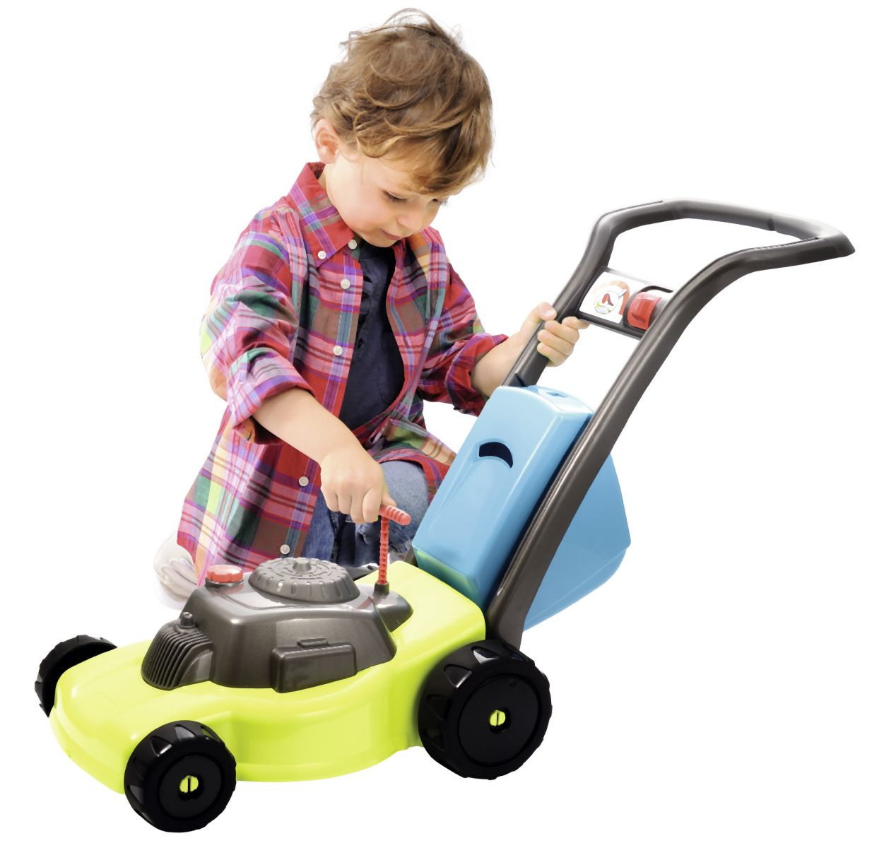 Záhradná kosačka s odnímateľným košom, mechanickým hrkajúcim štartérom, otočným benzínovým uzáverom a prepínačom rýchlosti. Rozmery: 74 x 28,5 x 53,5 cm.