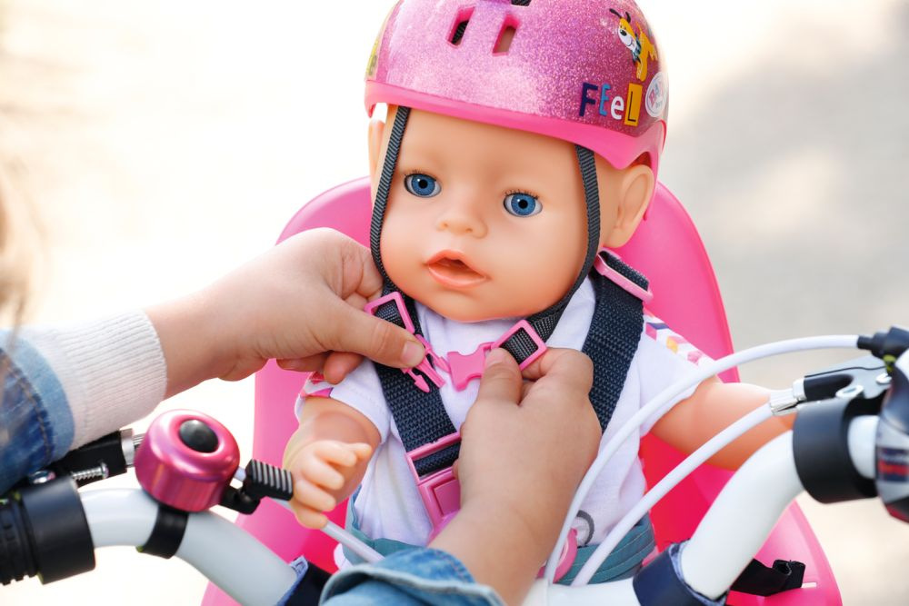 Bezpečnosť je dôležitá pre každého, a preto si BABY born pred každou jazdou nasadzuje helmu, či už vyráža na bicykli alebo na trojkolke. Vďaka jasnej ružovej farbe a trblietkam nemožno BABY born prehliadnuť. Helma vyzerá skvele aj na starších súrodencoch BABY born.