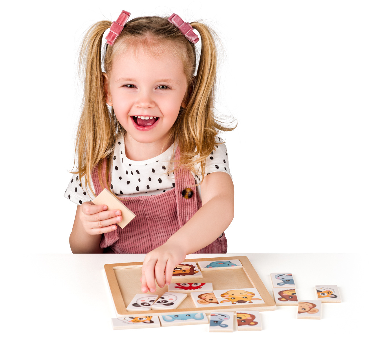 Puzzle pro nejmenší děti. Každý obrázek tohoto puzzle je jednoduše rozdělen na čtyři stejné části. Dětem při skládání pomáhá i barva podkladu, která je u každého zvířátka jiná. Vše je uloženo v praktické dřevěné krabičce. | Věk: 2+ | Rozměr: 11 x 11 x 3,5 cm |
