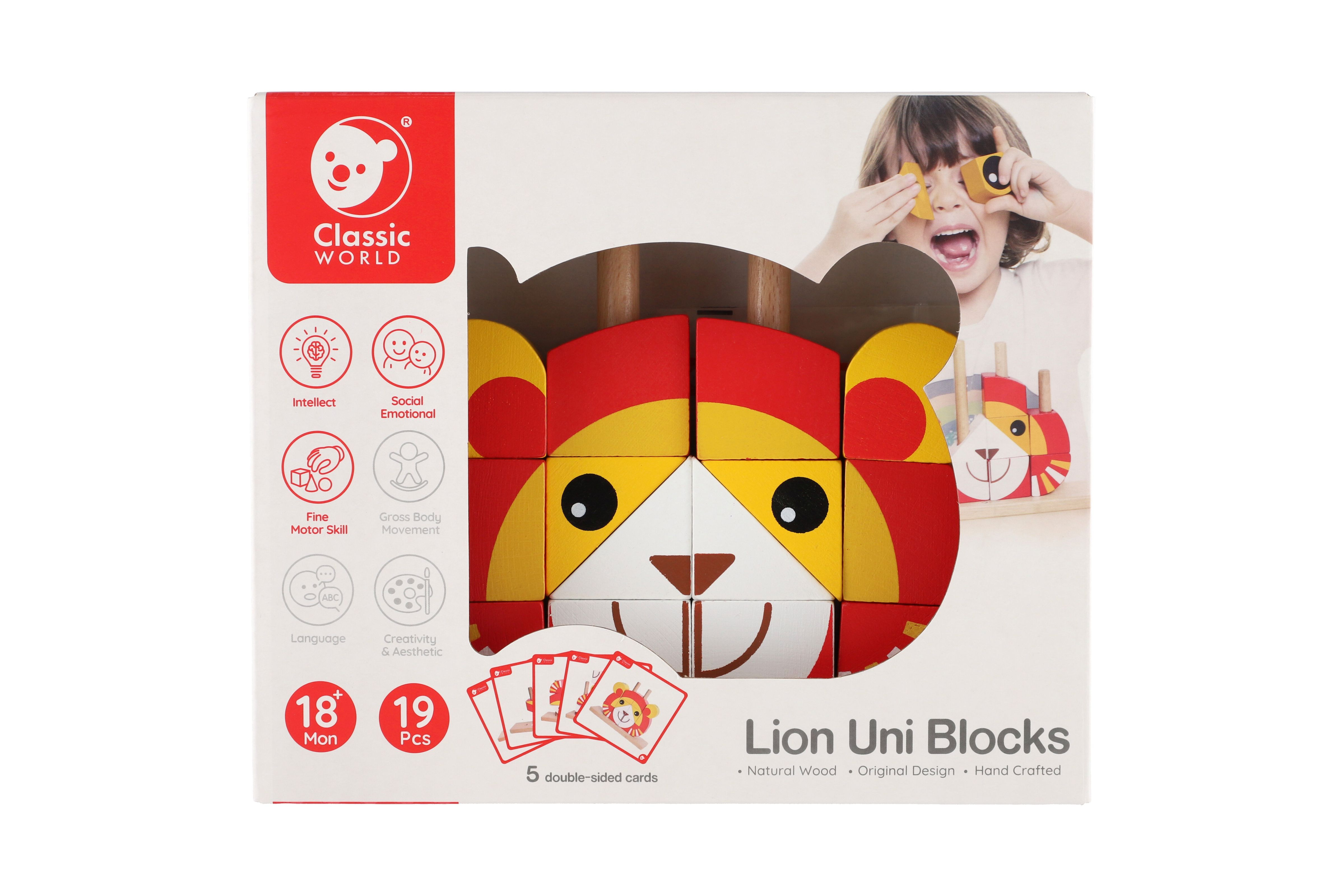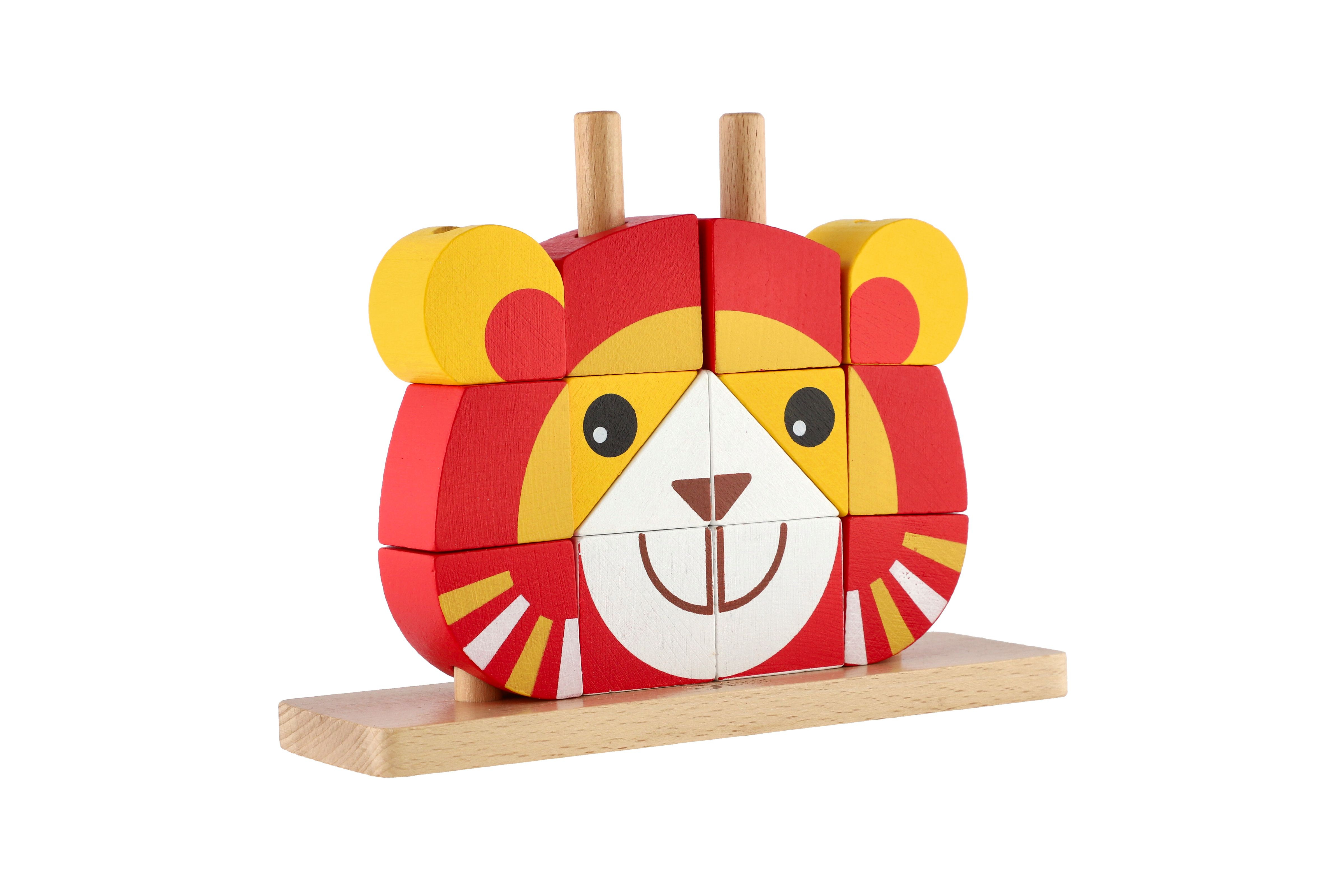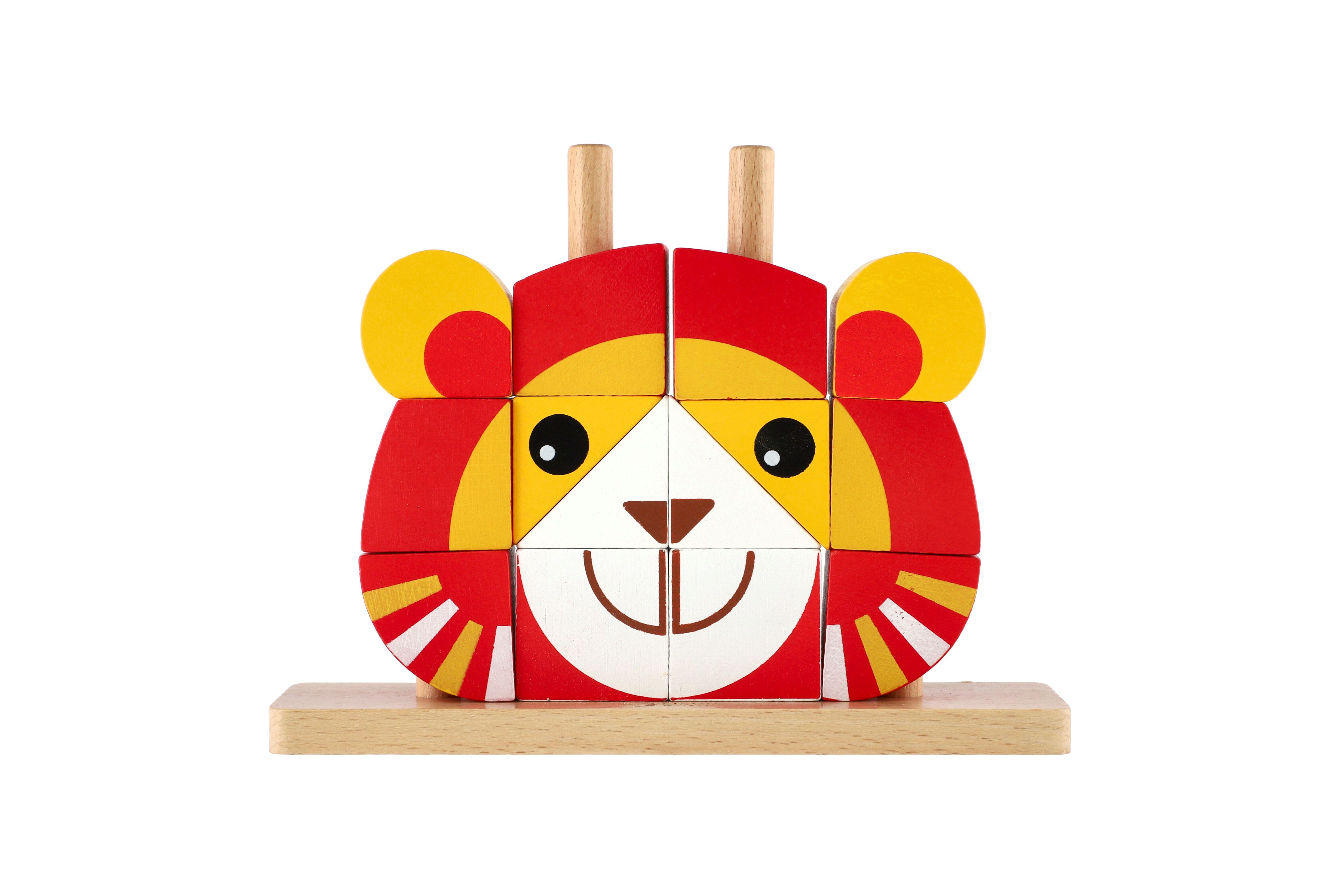 Skládanka lev obsahuje 19 dřevěných dílků (14 kostek, podložka, 4 tyčky), které lze různě stavět na podložku s tyčkami. Děti si tak mohou postavit různé předměty i zvířata. V sadě najdete 5 oboustraných předloh pro skládání. Rozměr krabice: 23 x 19 x 6,5 cm Vhodné pro děti od 18 měsíců