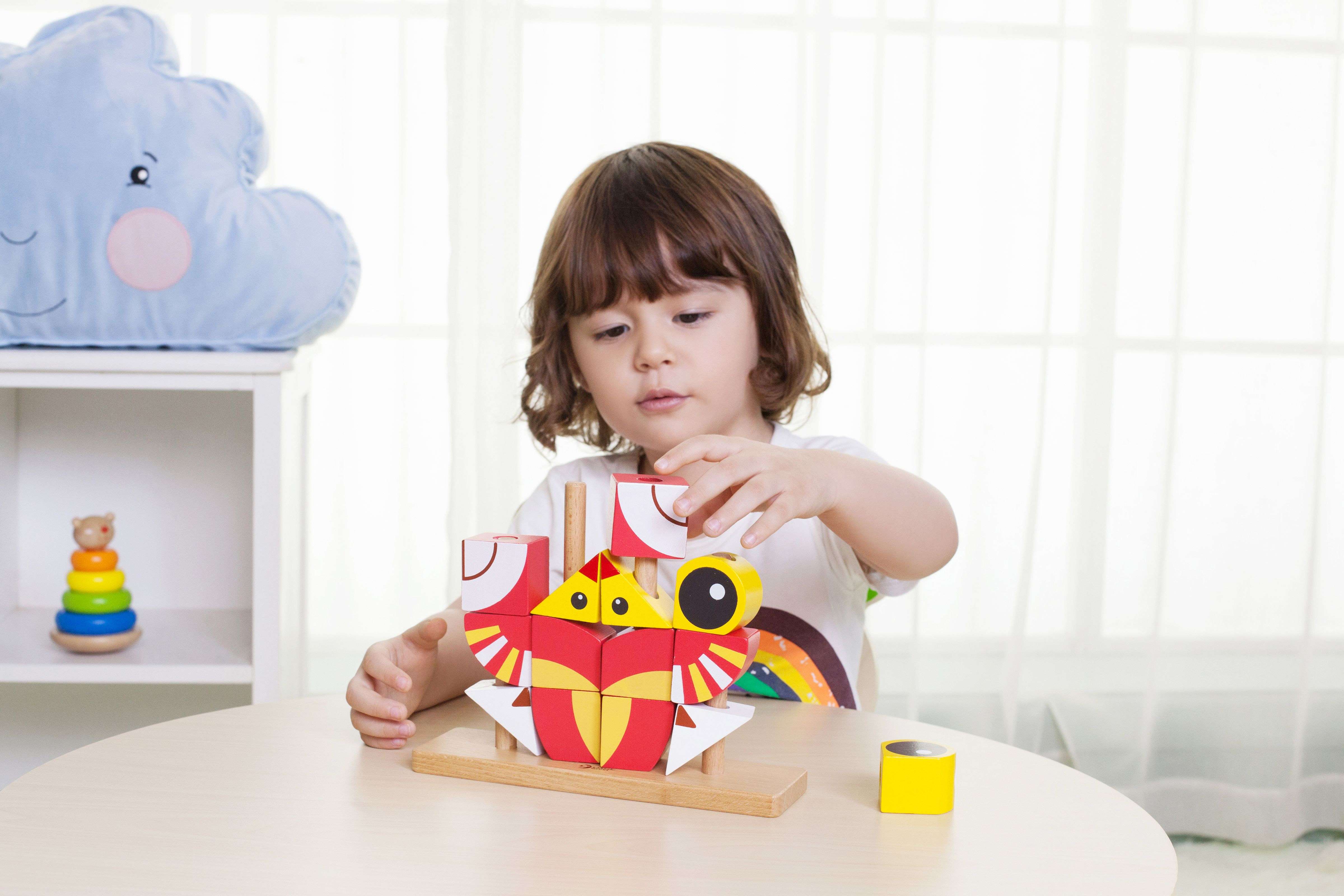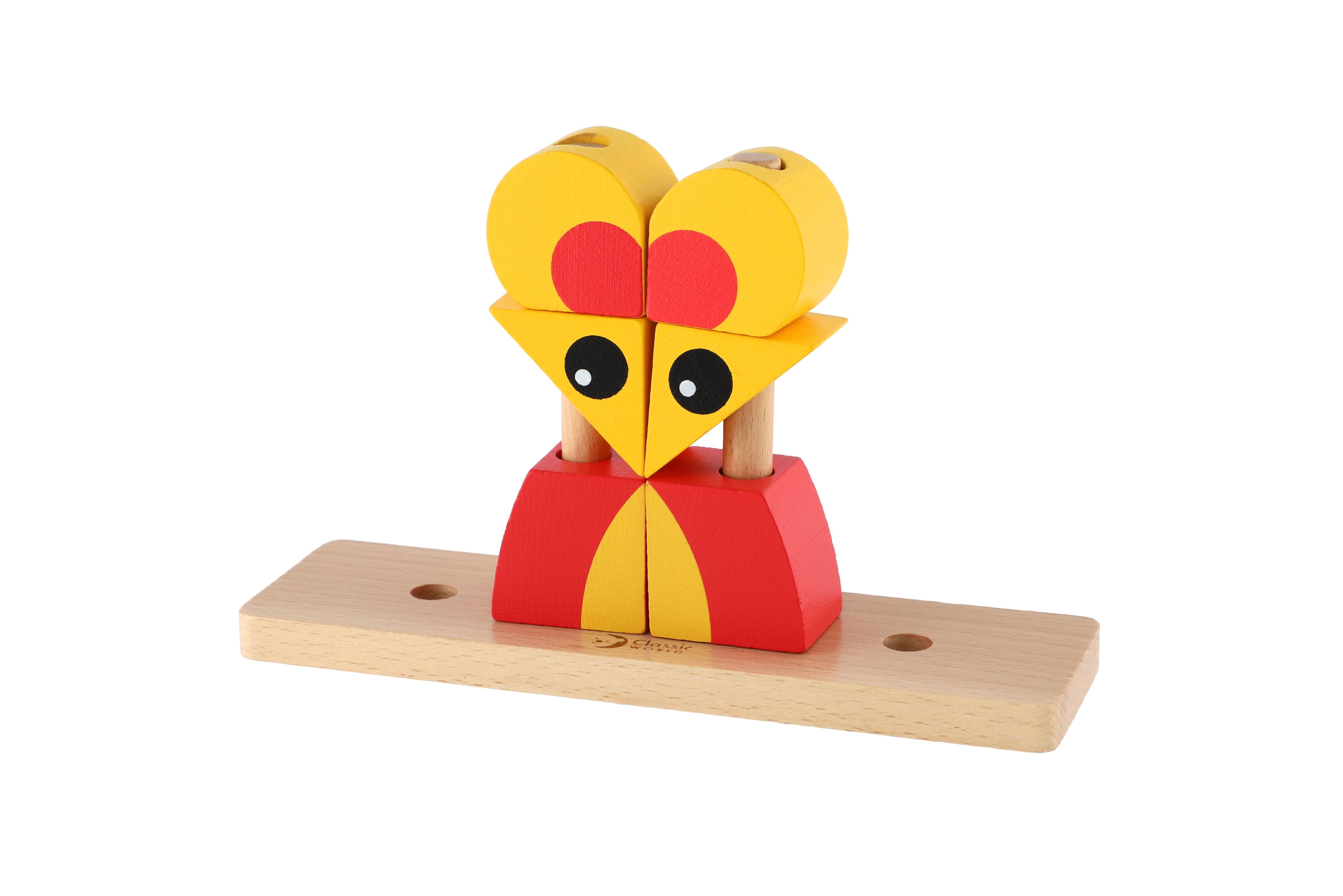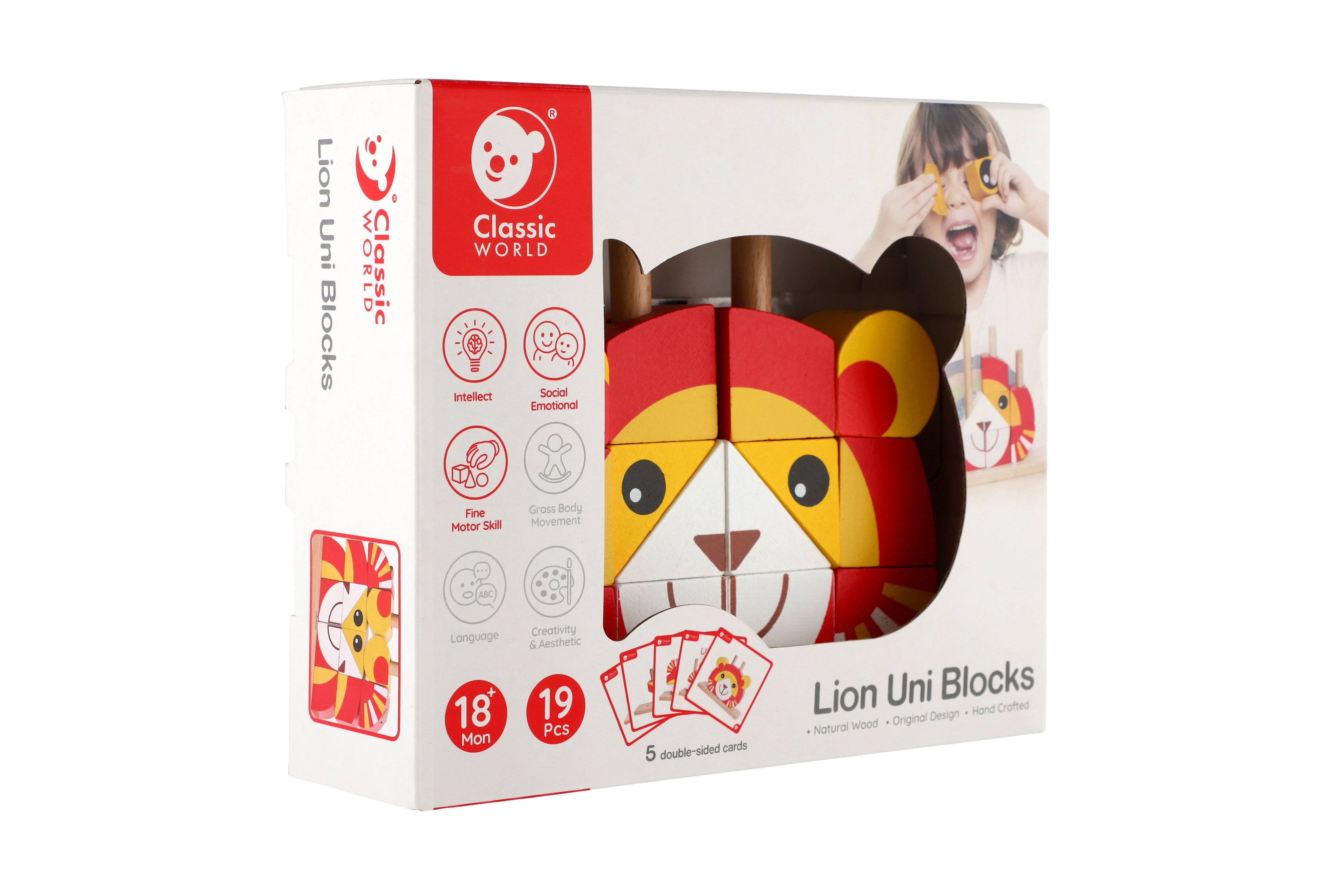 Skládanka lev obsahuje 19 dřevěných dílků (14 kostek, podložka, 4 tyčky), které lze různě stavět na podložku s tyčkami. Děti si tak mohou postavit různé předměty i zvířata. V sadě najdete 5 oboustraných předloh pro skládání. Rozměr krabice: 23 x 19 x 6,5 cm Vhodné pro děti od 18 měsíců