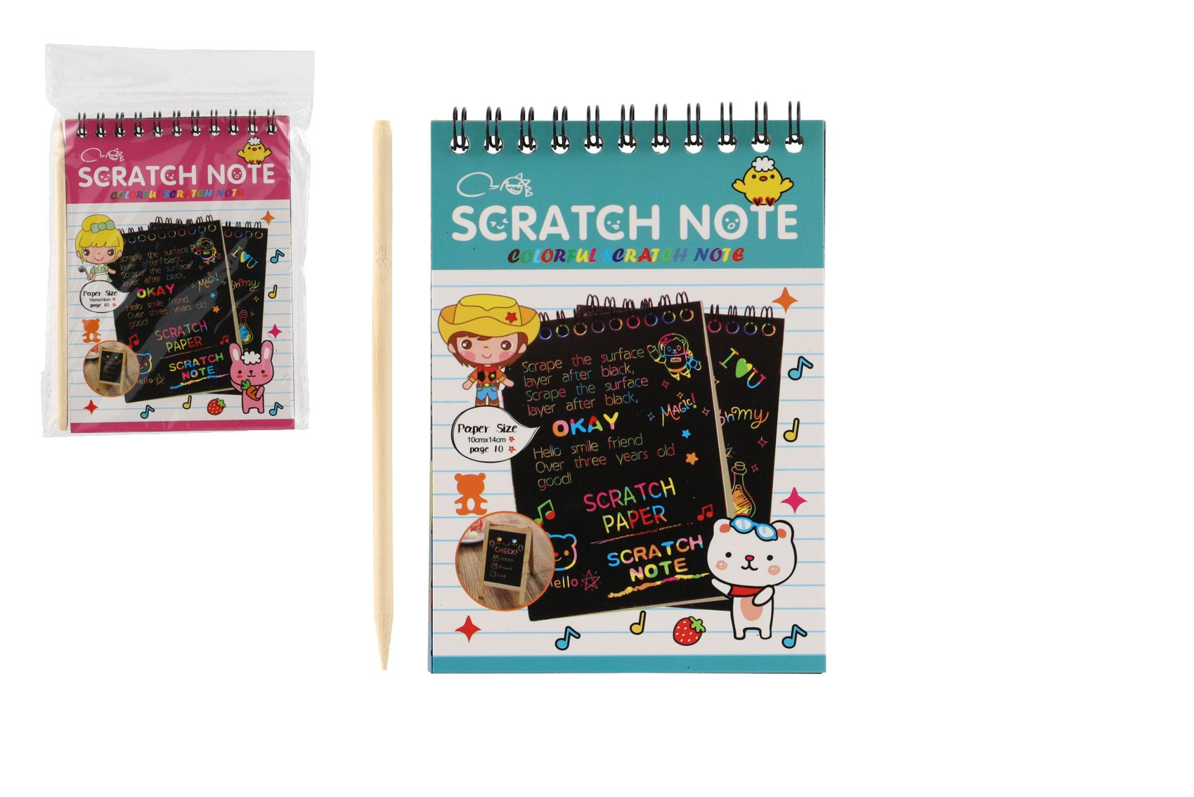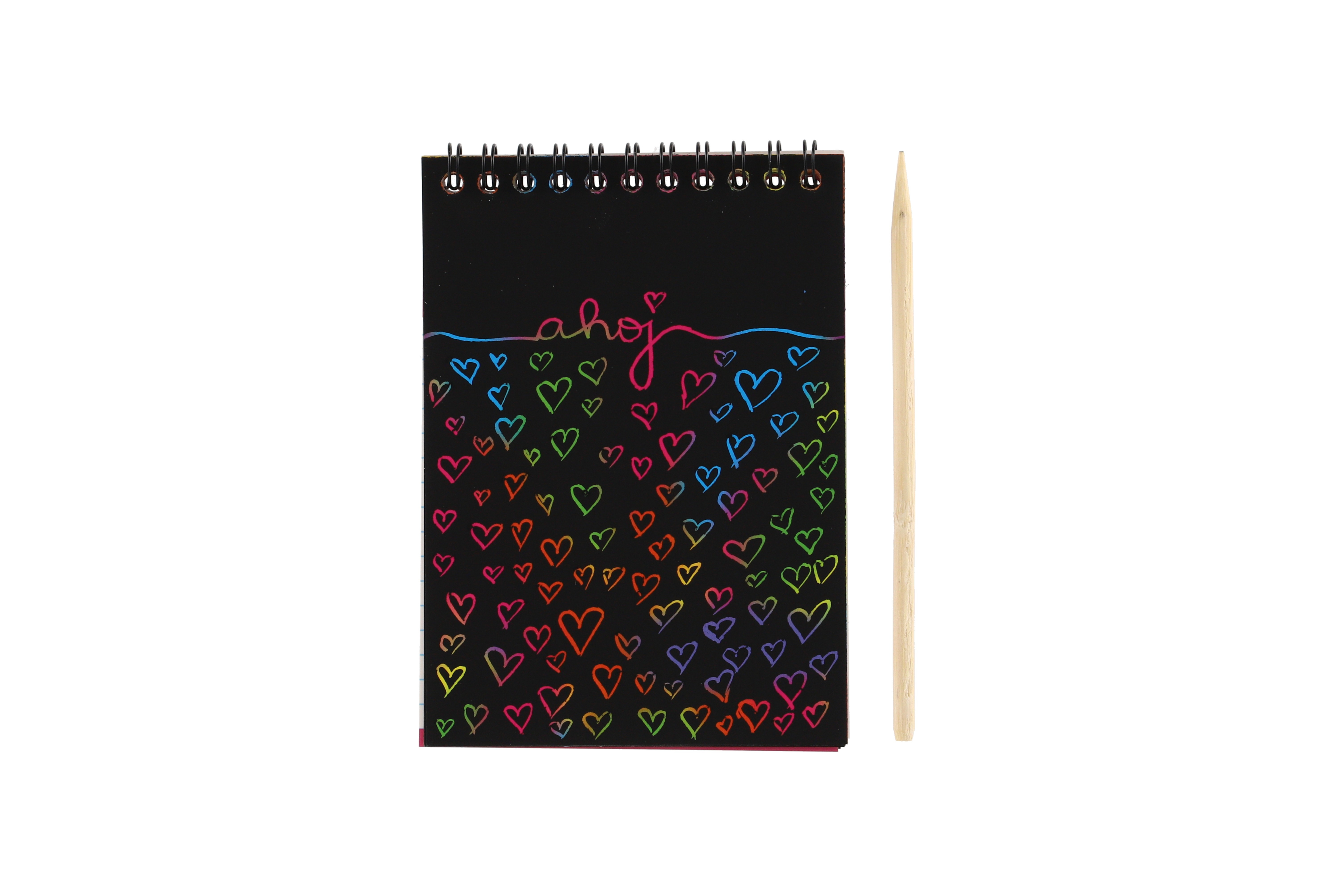 Popis Škrabací/Vyškrabovací notes barevný 10 listů 10x14cm 2 barvy v sáčku