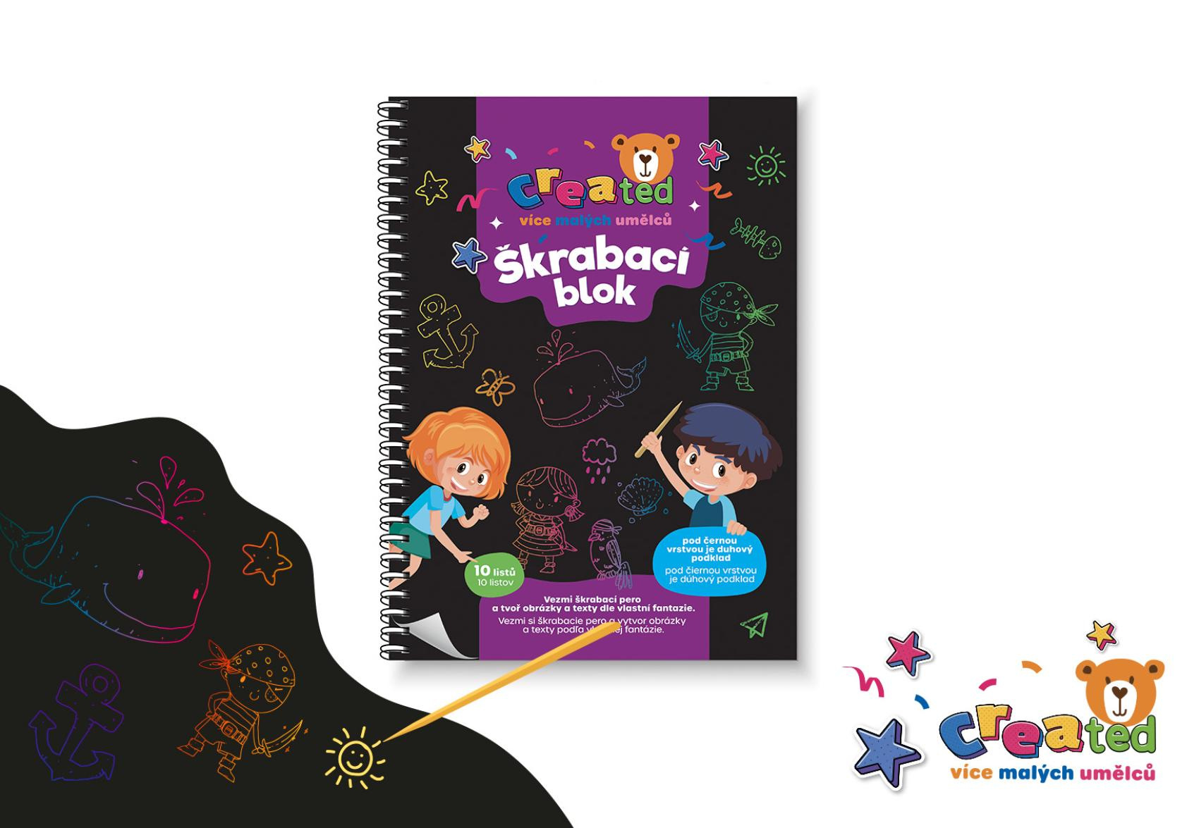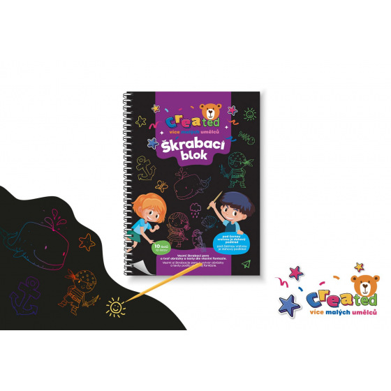 Kouzelný blok, který ukrývá barevný svět pod temným povrchem. Stačí vzít škrabací pero a sledovat, jak se s každým tahem objevují pestré barvy a veselé obrázky. Pro děti, které rády tvoří vlastní příběhy.
