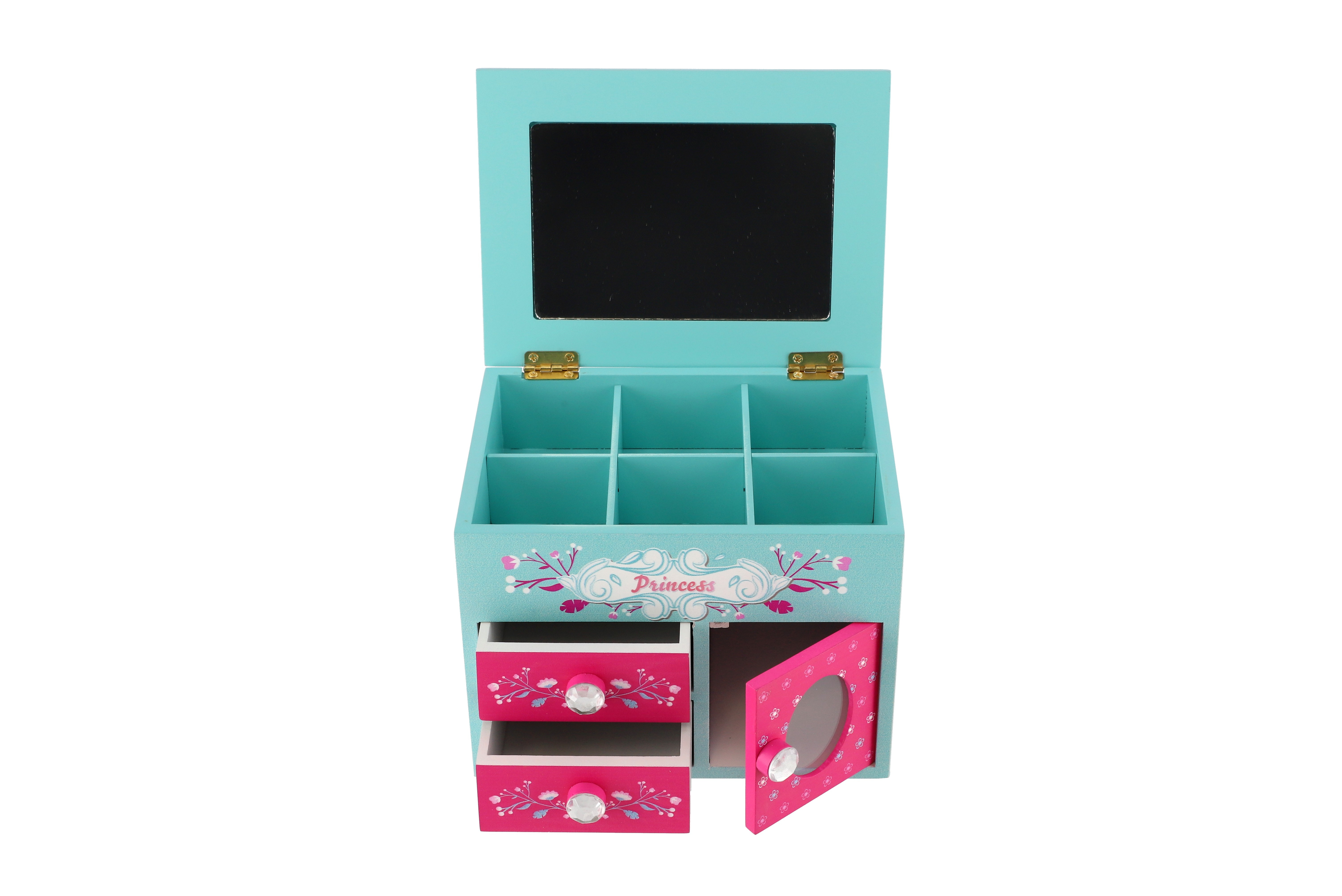 Popis Teddies Skříňka šperkovnice Princess 3 zásuvky odklápěcí vrch se zrcátkem dřevo 16x12,5x12cm v krabici